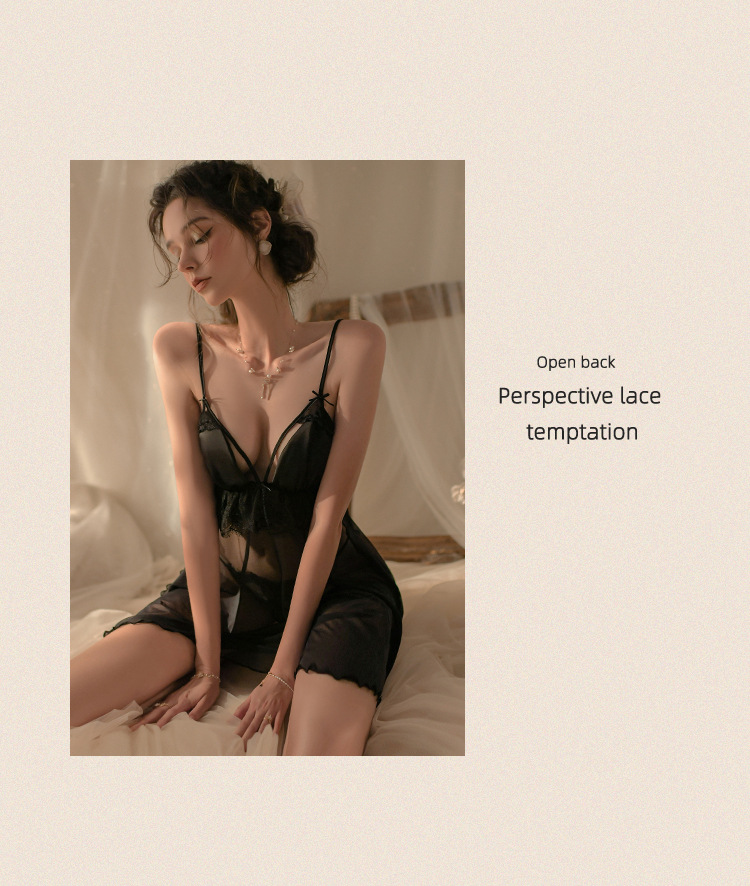 新商品の高級感のある網紗のセクシーなパジャマのフランス式のロマンチックなデザイン感の鋼托の透視はデートの軍服の寝スカートを誘惑します。