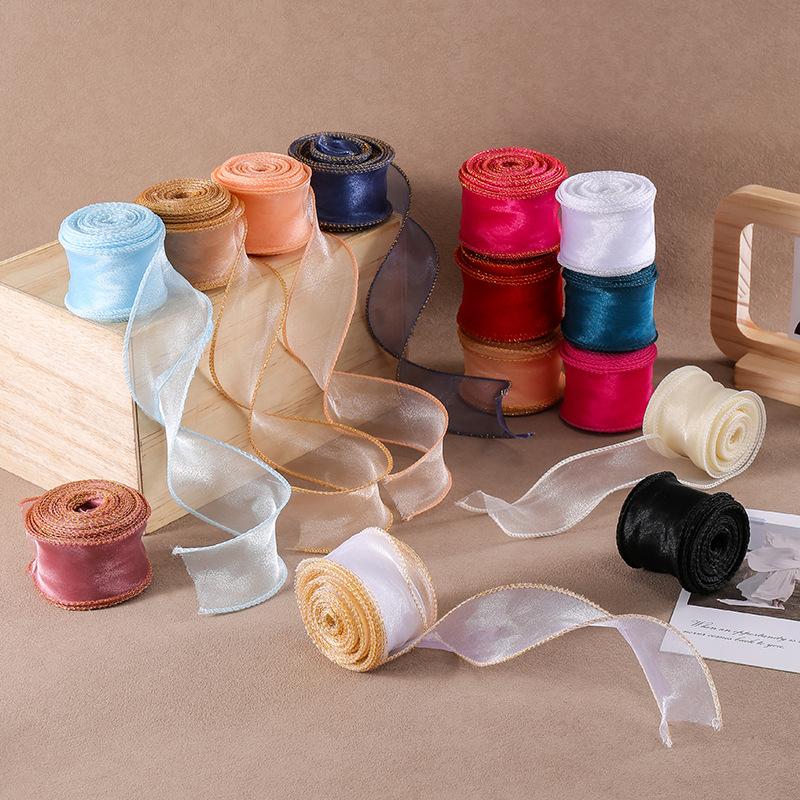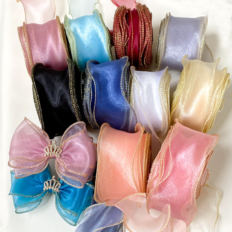 10 ヤード/40 ヤードフィッシュテール糸リボンゴールドエッジフラワーギフト包装材料 diy ブーケケーキ包装リボン