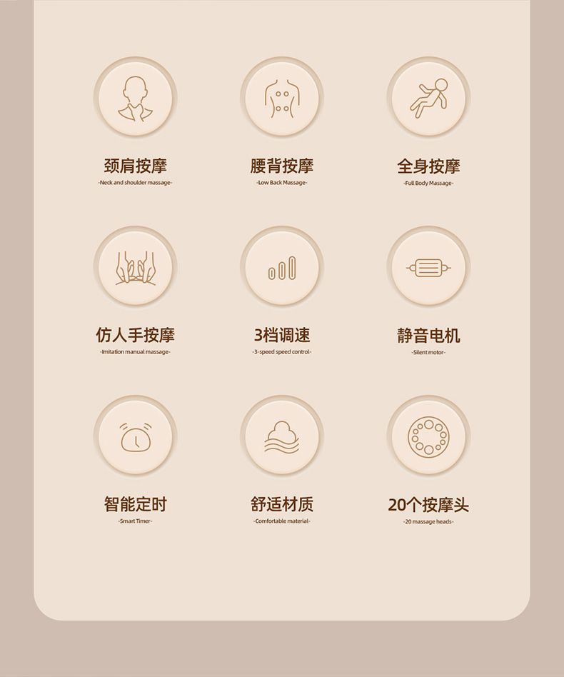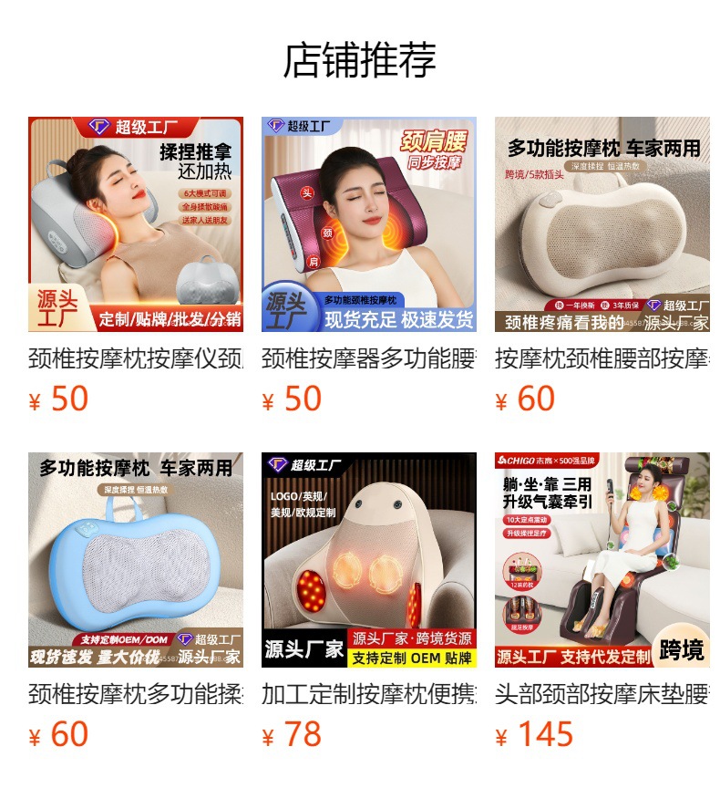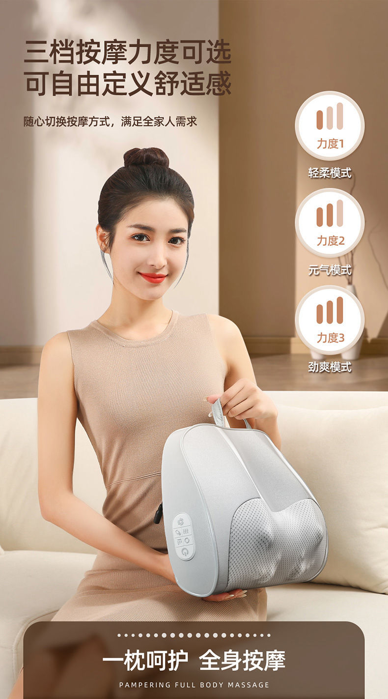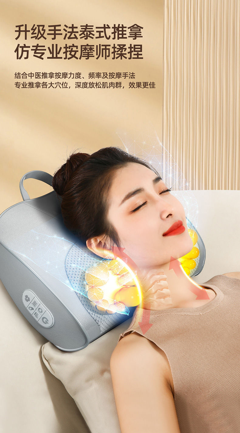 新款腰部按摩仪全身可用按摩颈枕背部颈椎按摩枕热敷多功能按摩器