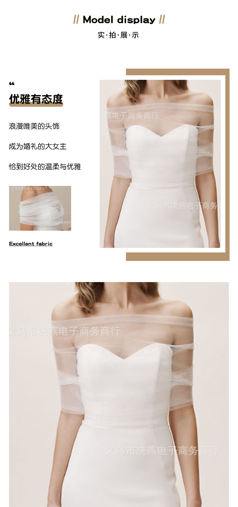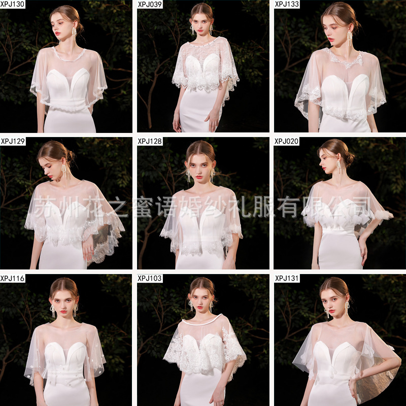 V323花嫁のマントの優雅なウェディングドレスの肩の薄い紗は肉を遮ってやせているマントの結婚式のアクセサリーの卸売りを現します。