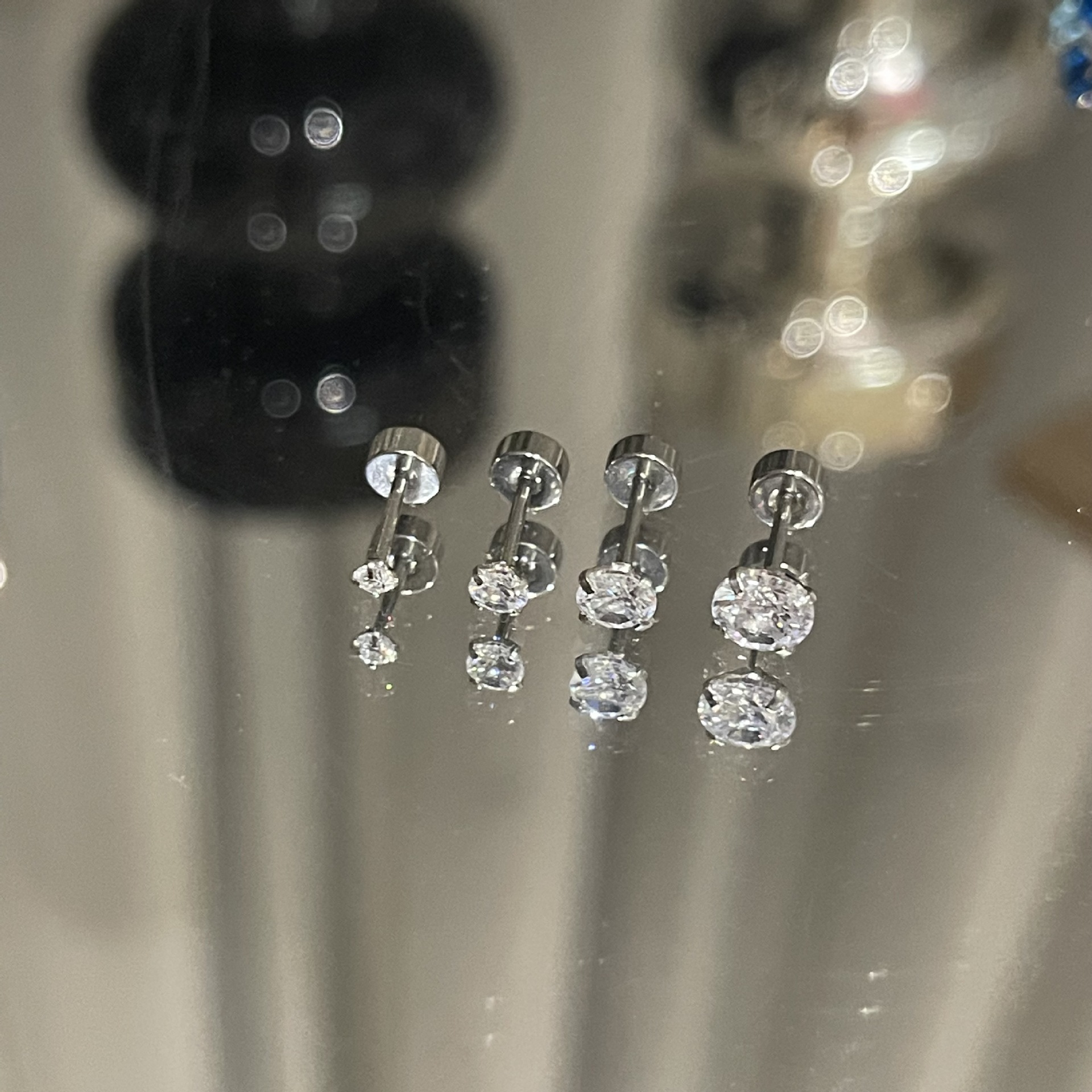 睡眠中に外す必要のない絶妙なチタン鋼のイヤースタッド、ラウンドジルコン象嵌ピアスジュエリー、クロスボーダーイヤースタッド、小さくて絶妙です。