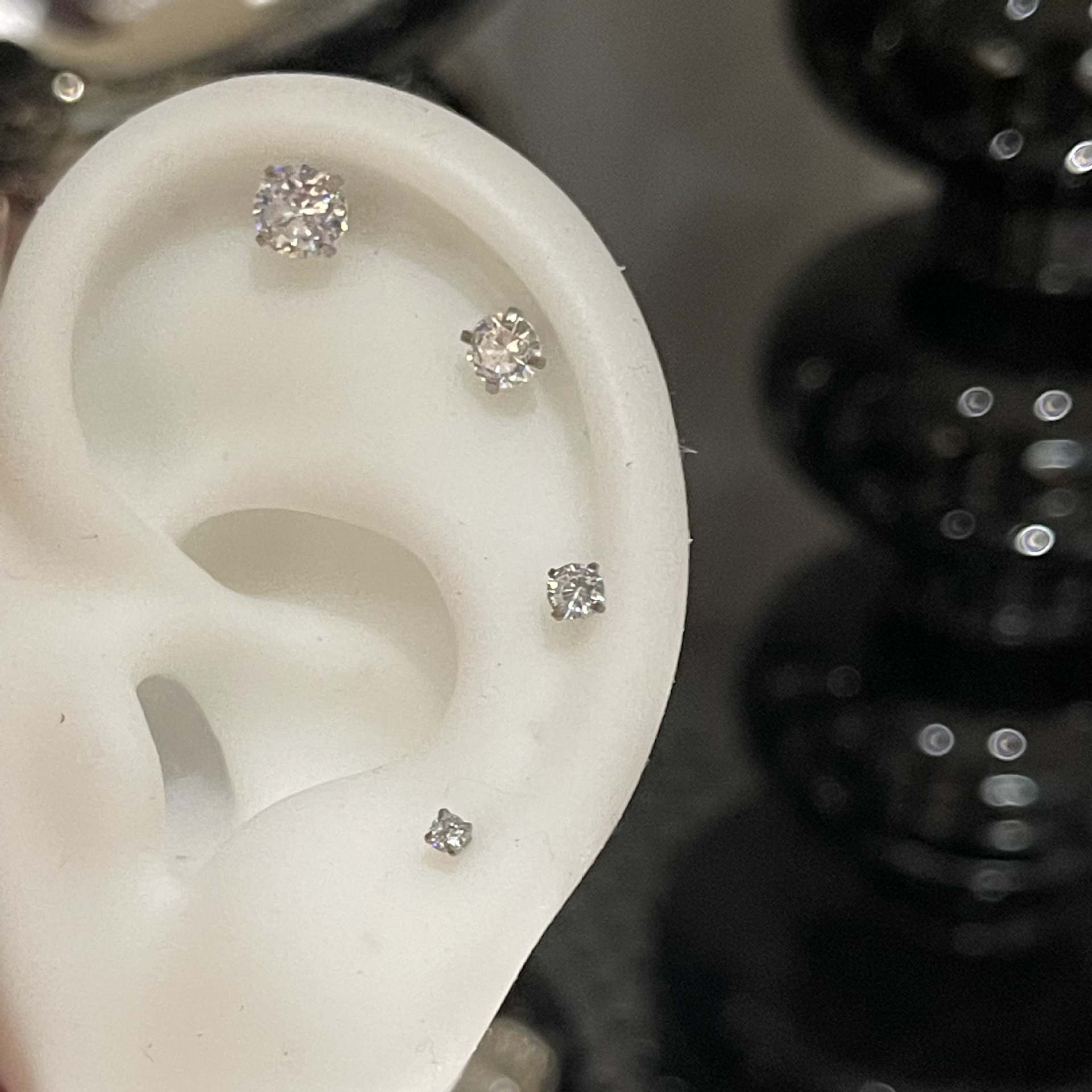 ジルコンのイヤリングを少し入れて、イヤリングの雰囲気を明るくします。