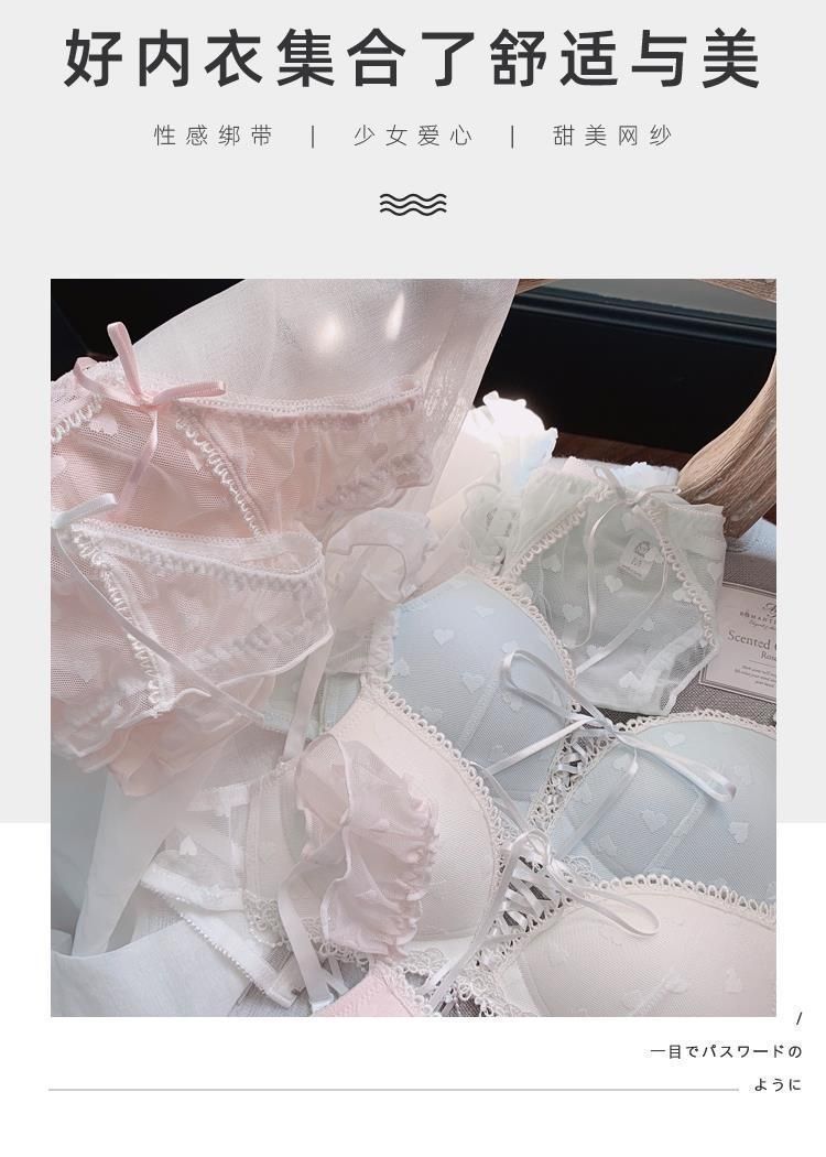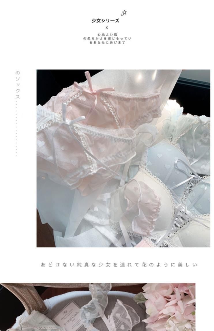 かわいい日系ロリータ少女下着レースの縁にスチールリングのない胸が集まって快適な三角カップのブラジャーセット