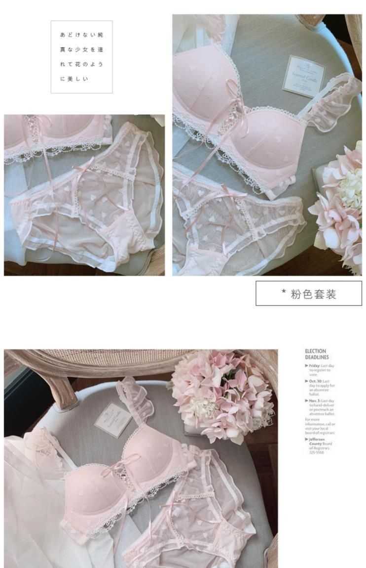 日本の学生下着女性の小さな胸プッシュアップブラジャー女性のレースワイヤレス薄型ブラジャーセット