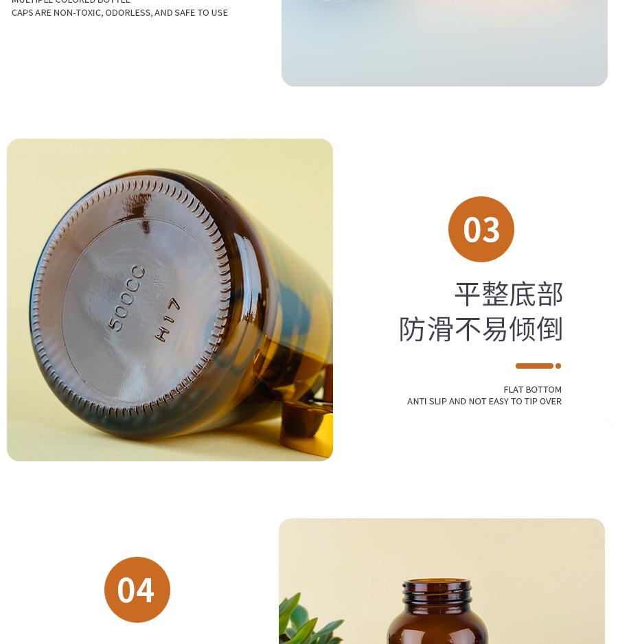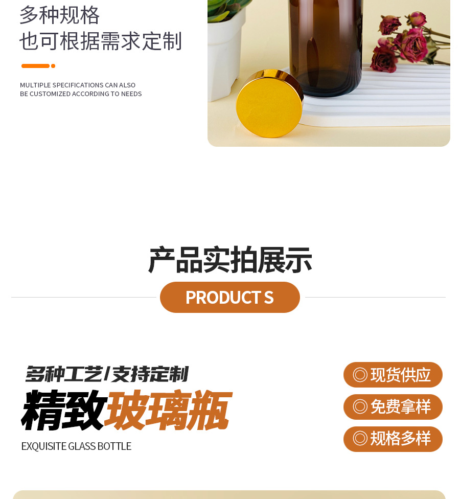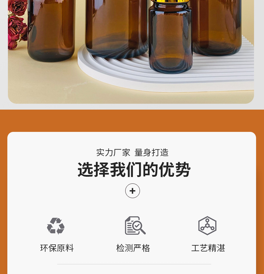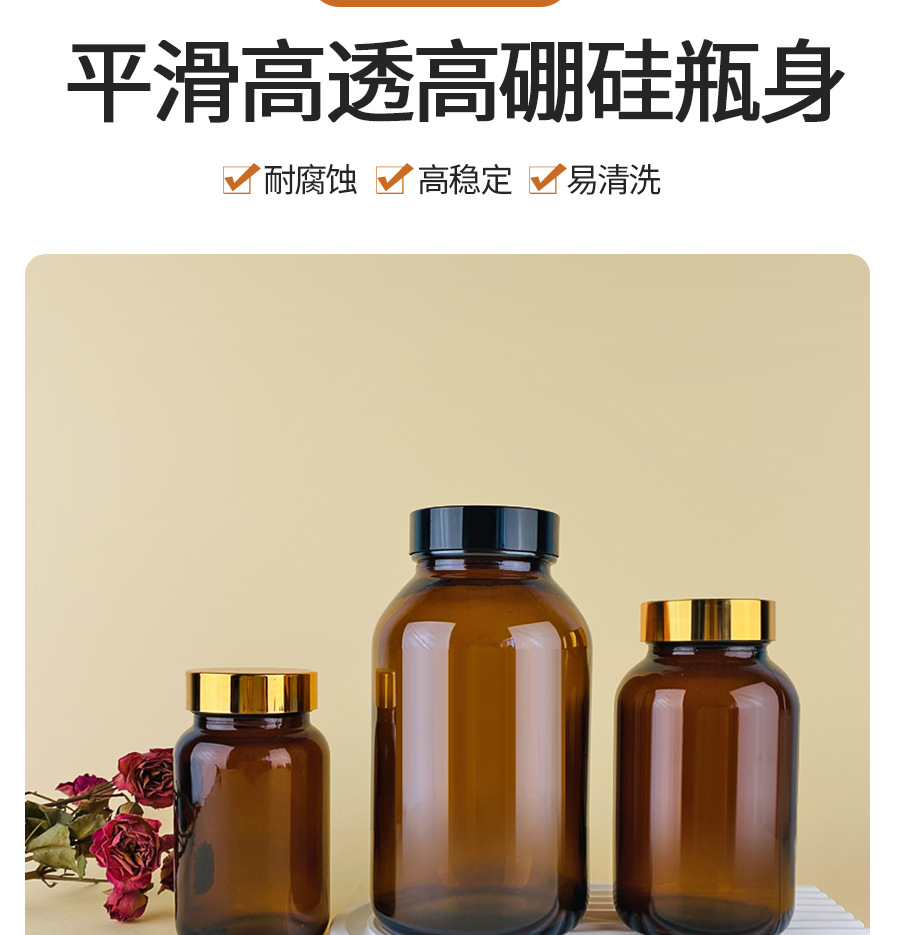卸売り茶色ガラスカプセル瓶遮光密封サンプル試薬瓶茶色健康食品精油分注ガラス瓶