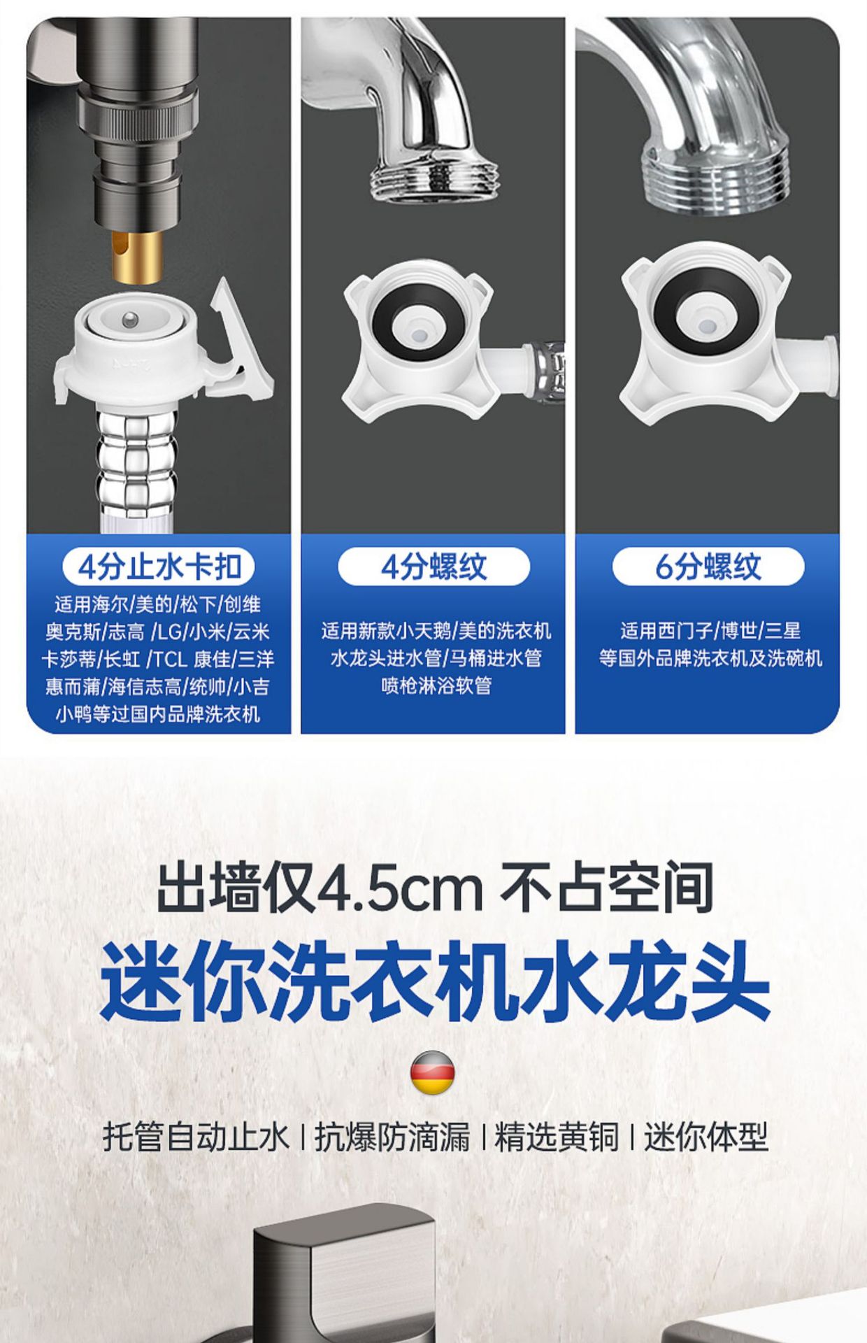 全铜体快开龙头浴室出水阀跨境外贸批发自动止水迷你洗衣机水龙头