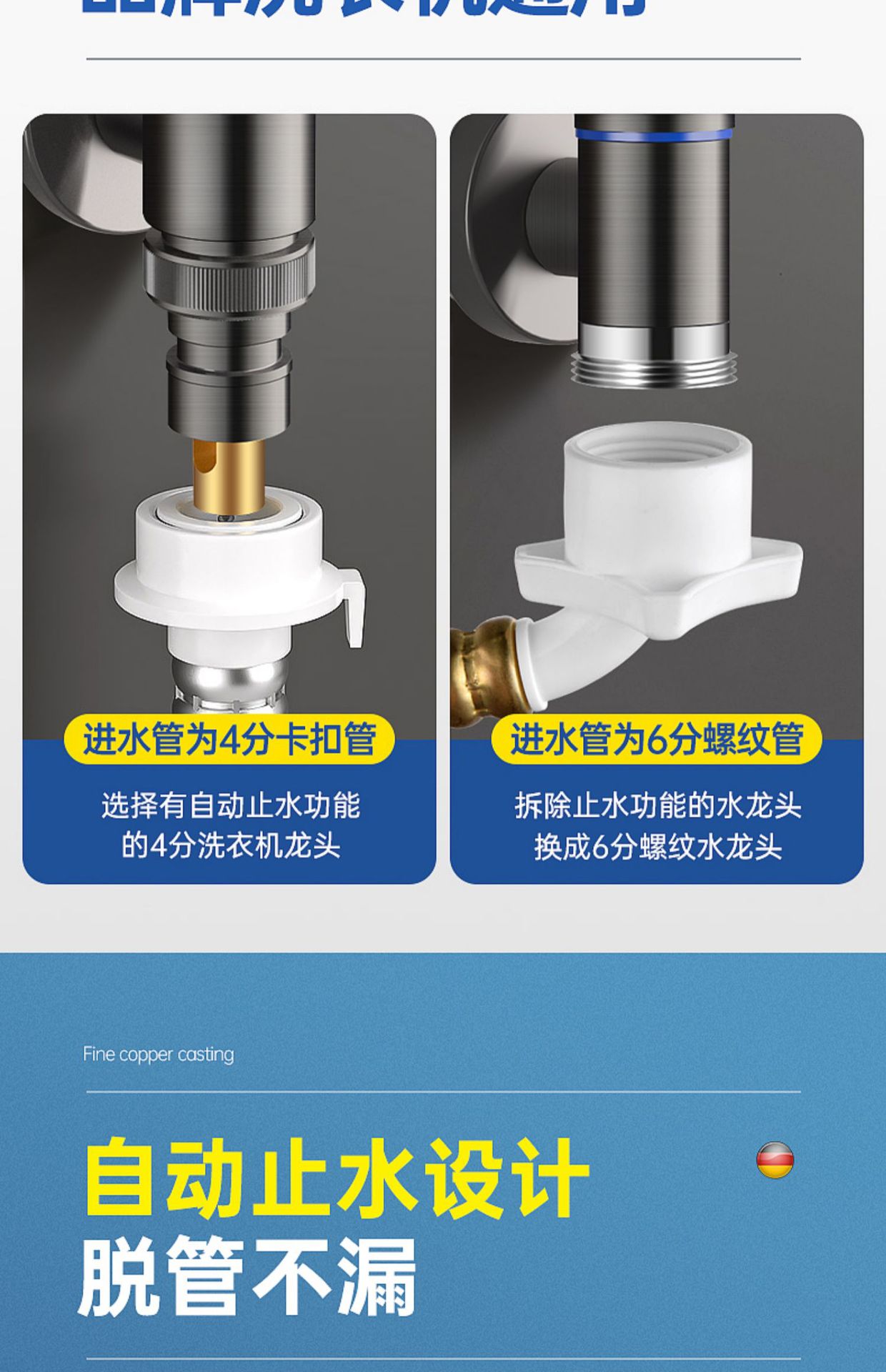全銅洗濯機蛇口自動止水弁専用バックル式水口ジョイントドラム自動46分通用