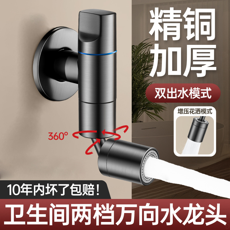 枪灰色精铜卫生间拖把池水龙头万向加长入墙式家用阳台洗衣机龙头