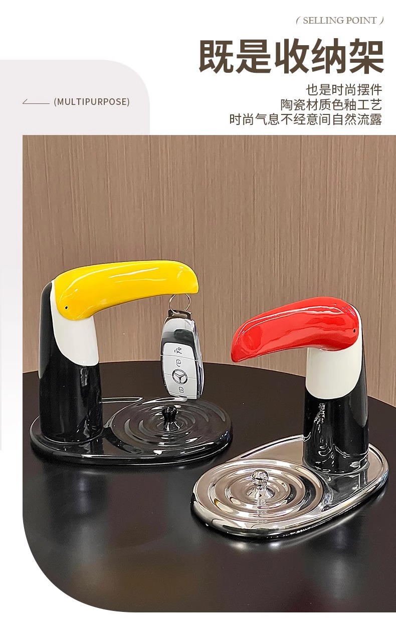 軽くて豪華な風のオウムの鍵の収納の置物の高い顔の値の陶磁器の家のトレーは飾って新居の贈り物の卸売りに引っ越します。