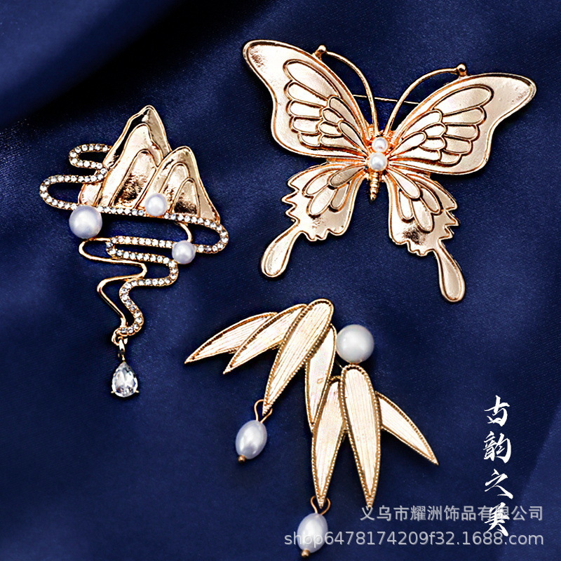 億かんざしアクセサリーdiy蝶ブローチ点翠螺胎底母の日端午節記念プレゼント団建材料