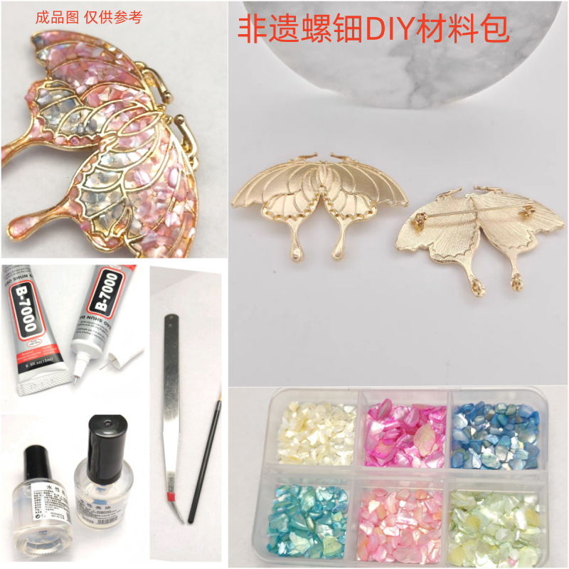 億かんざしdiy非遺留螺材料包擬点翠ブローチ胎底貝殻接着剤亮油ピンセット手作り材料