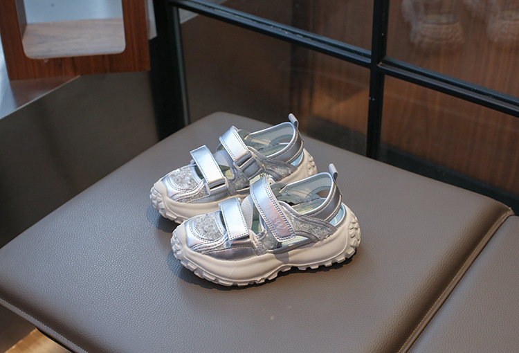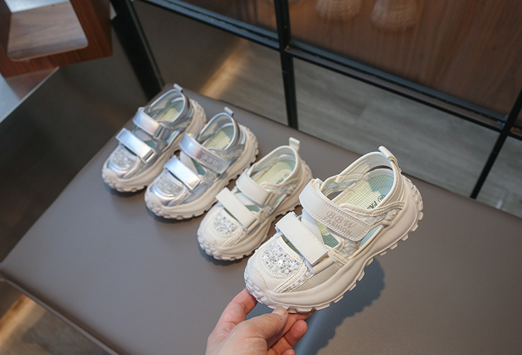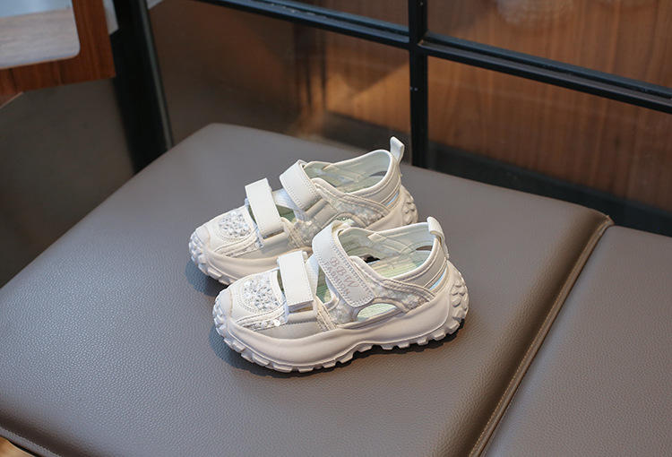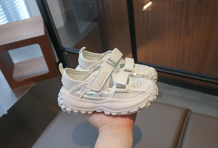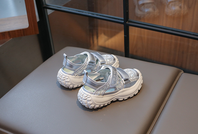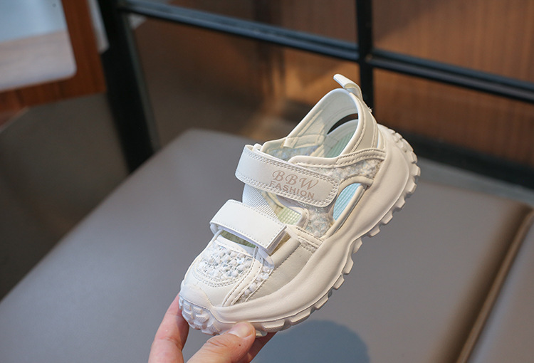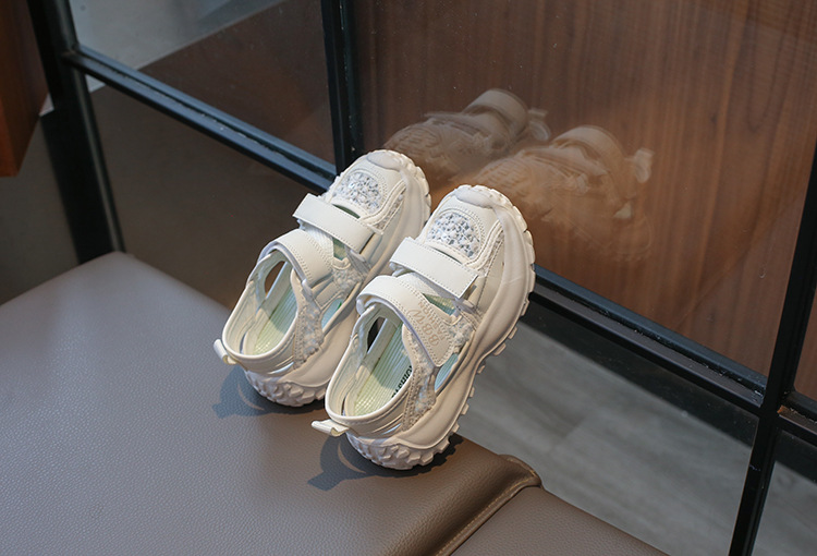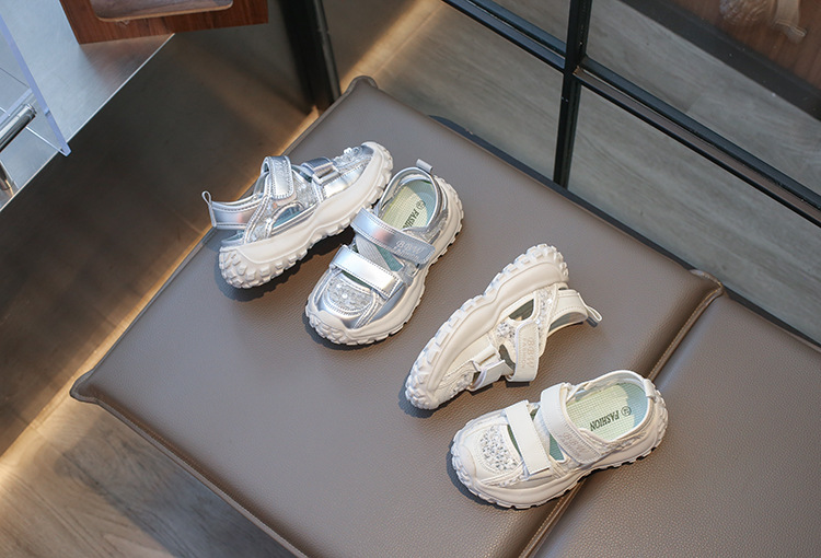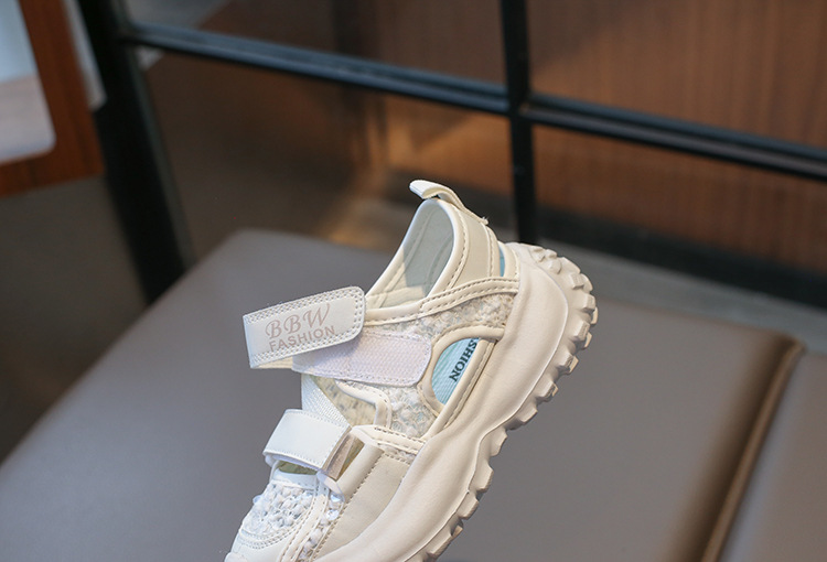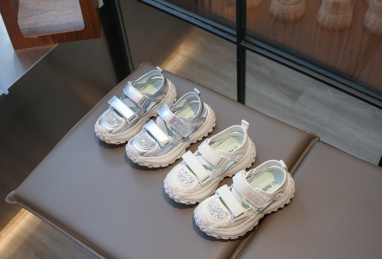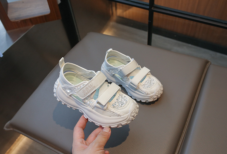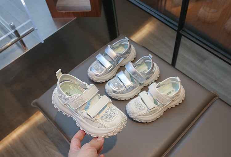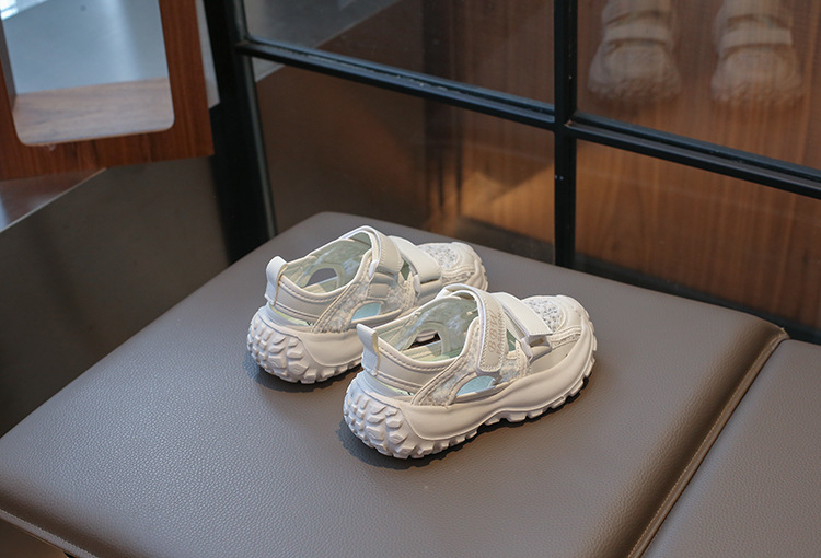 ボーイズスポーツフレームシューズ中空通気性シューズ2025夏子供用滑り止めソフトソール中型および大型女の子つま先靴