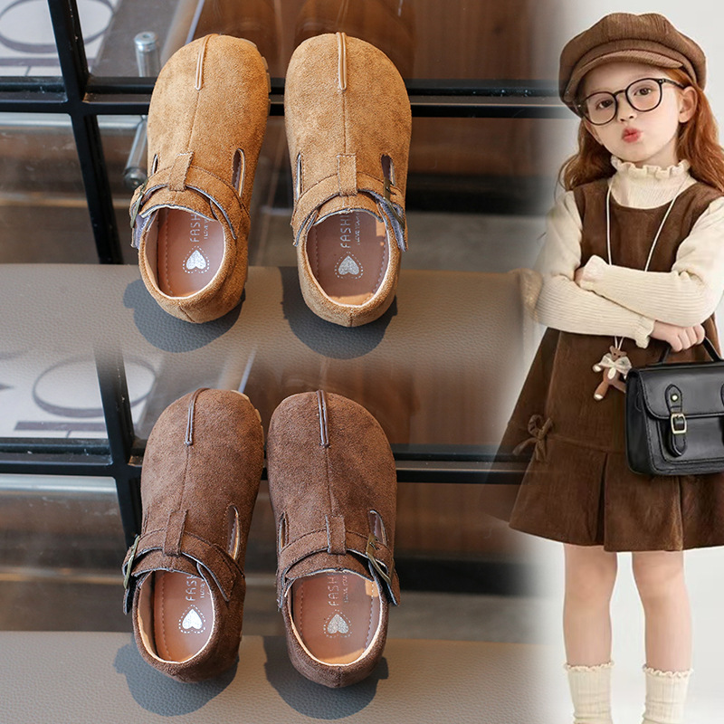 子供のベーケンの靴2025春秋の新型の韓国版の復古の豆の靴の男女の子供の柔らかい底の馬蹄の靴は足の靴を分けます。