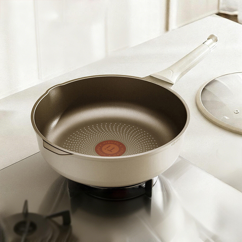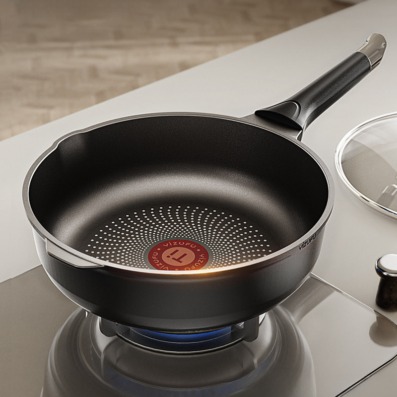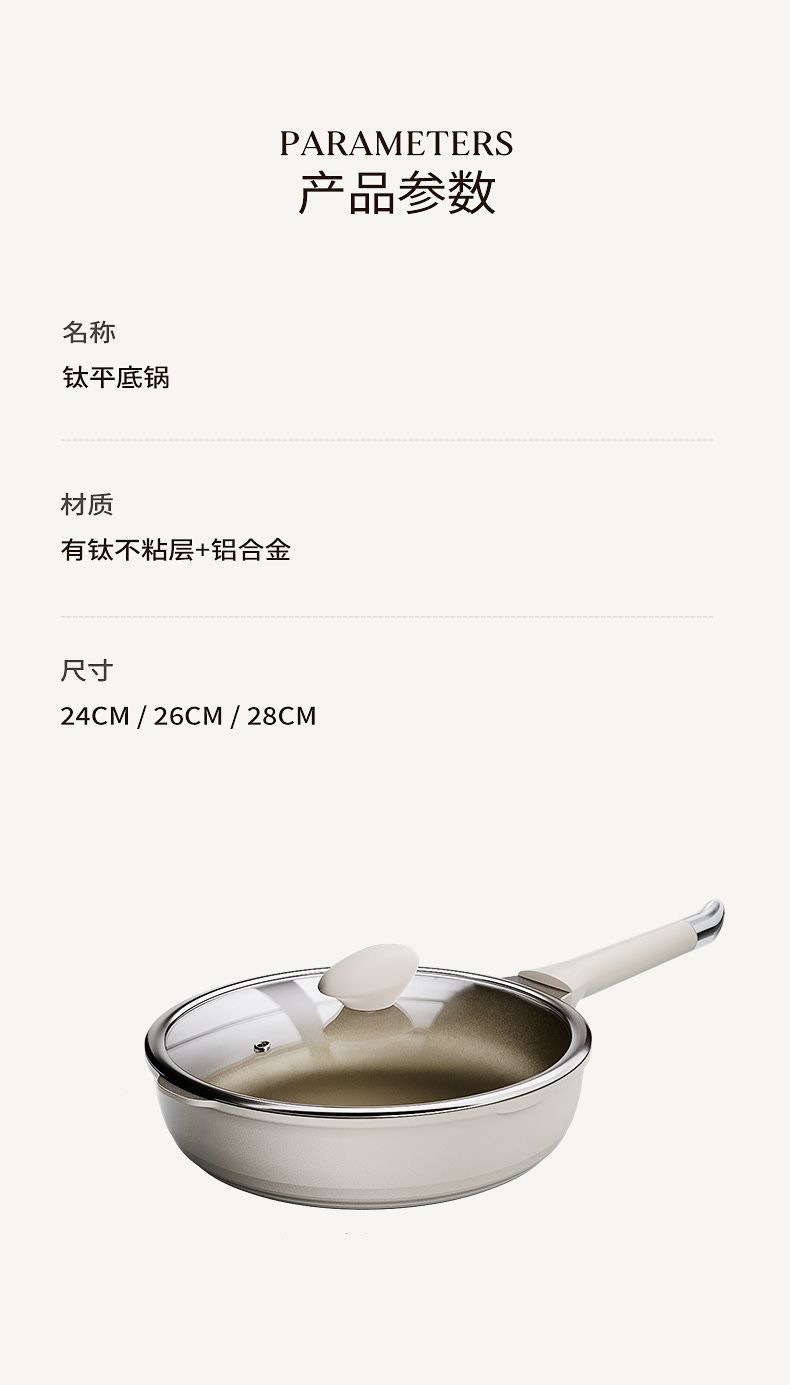 钛陶瓷炒锅加厚不粘锅家用平底炒菜锅陶瓷炒锅平底锅燃气灶电磁炉