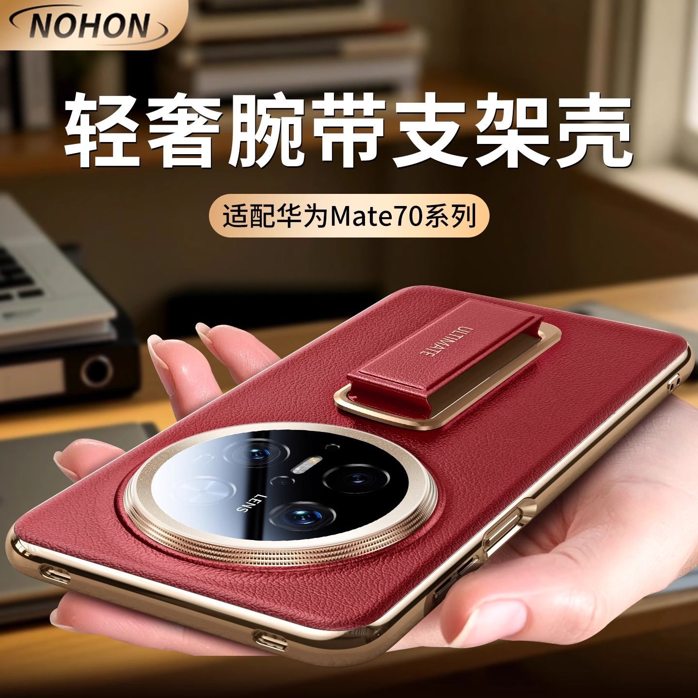 适用华为mate70pro优享版手机壳真皮新款旋转支架mate70防摔pro+