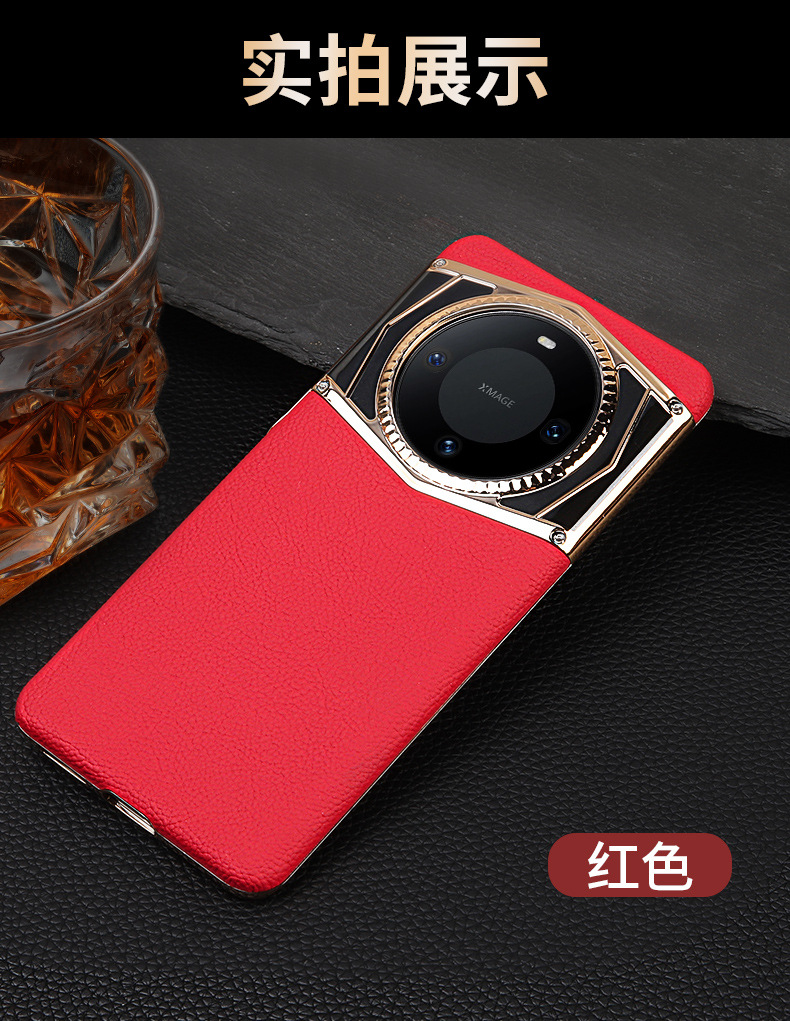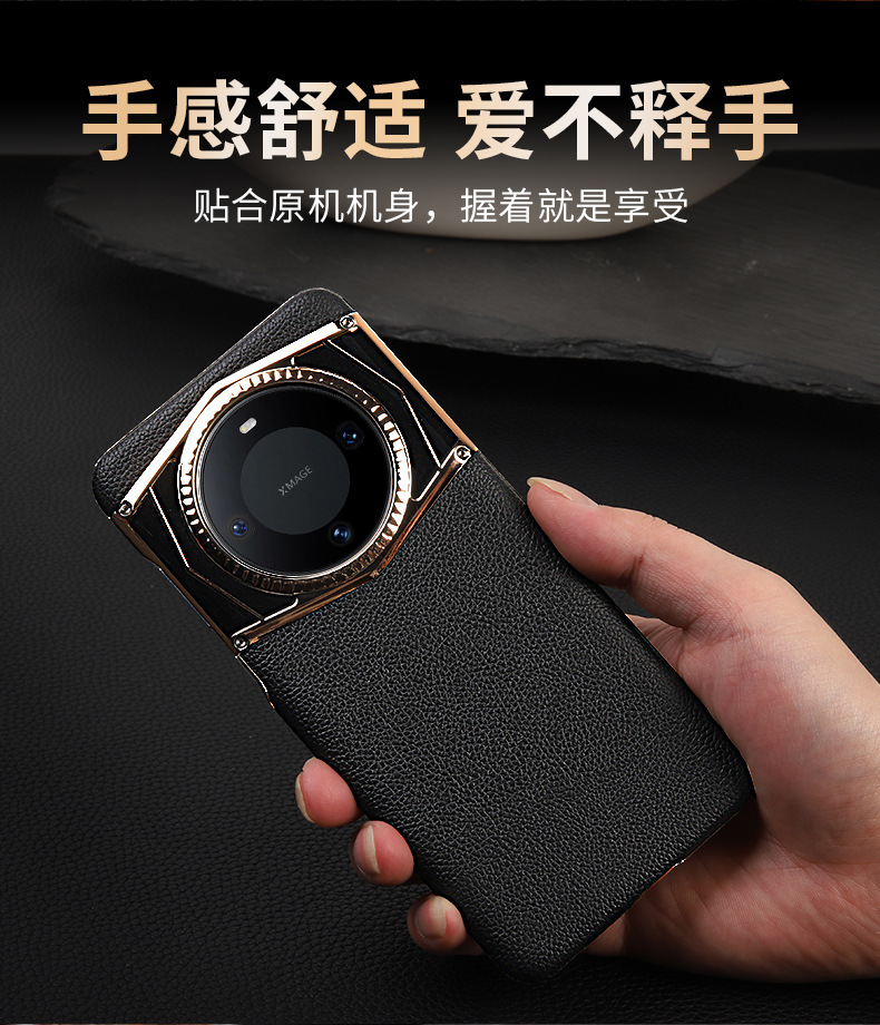 适用华为mate60pro手机壳新款真皮mate60旋转磁吸支架pro+防摔套
