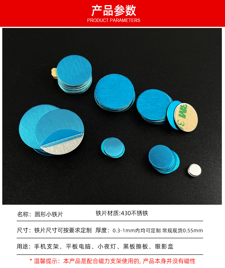 誘導灯誘導磁気シートバックテープ付き円形鉄板背面テープ携帯電話スタンドベース磁気吸引鉄板卸売り