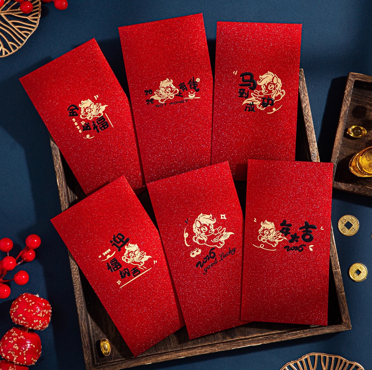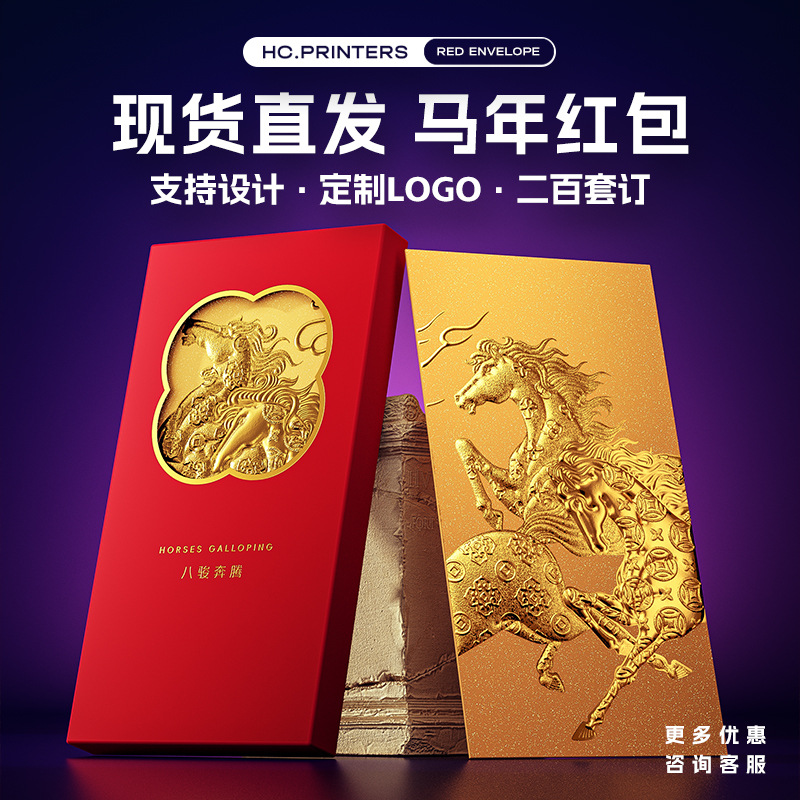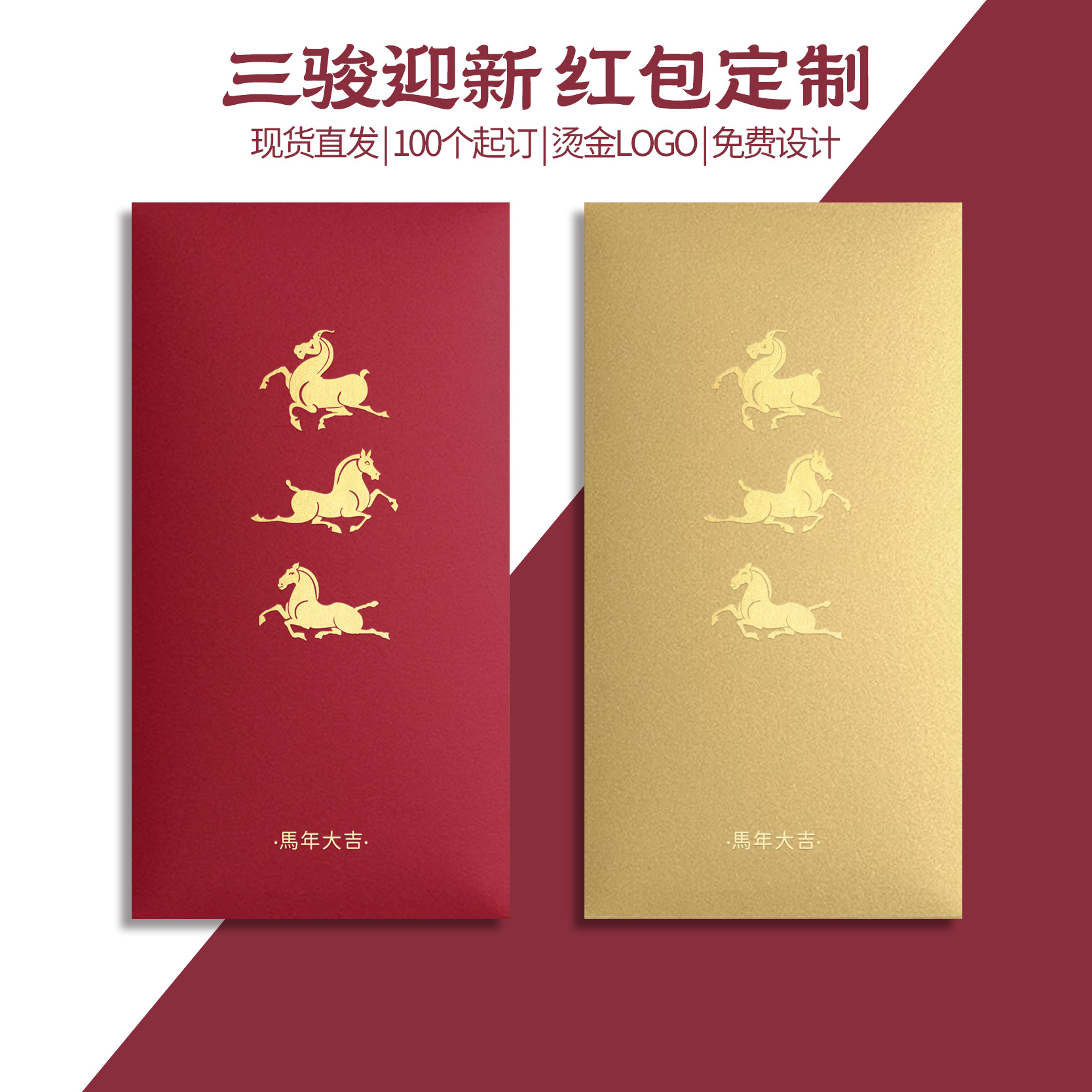 2026马年新款创意三骏迎新红包定制现货烫金节日通用利是封印LOGO