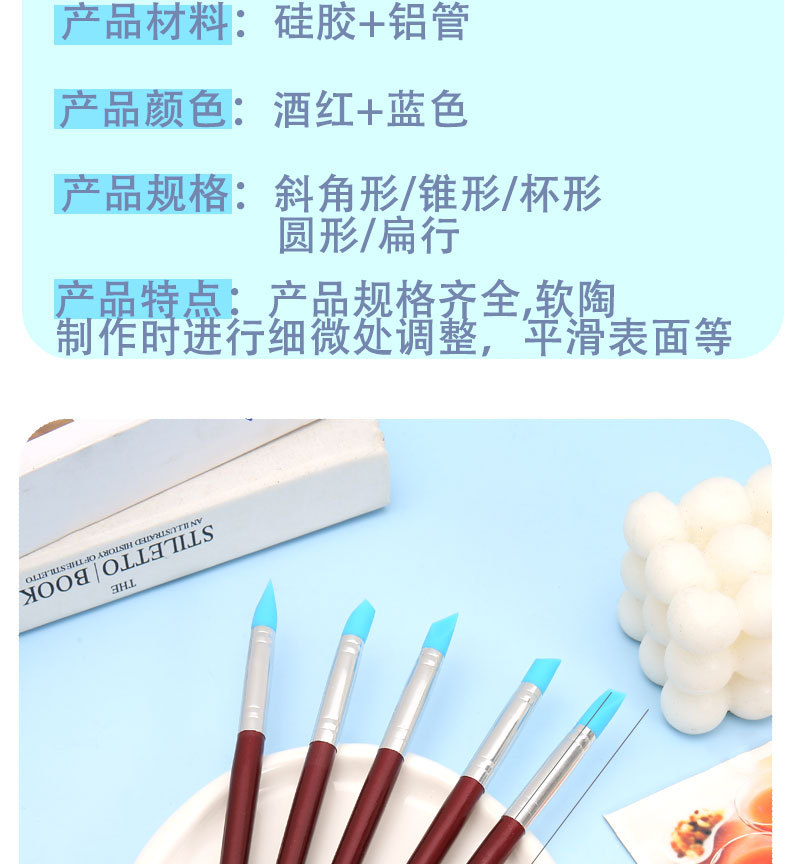 国境を越えて粘土を彫刻する5本の柔らかいシリカゲル陶泥ゴムペンの圧痕装飾陶泥道具ネイルドリルペン
