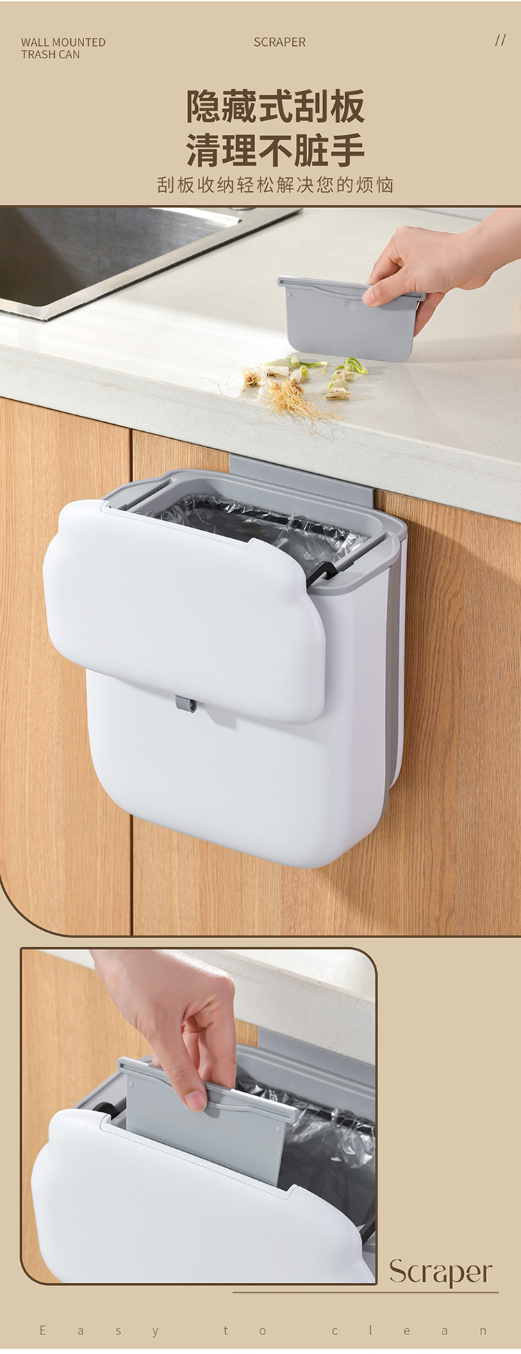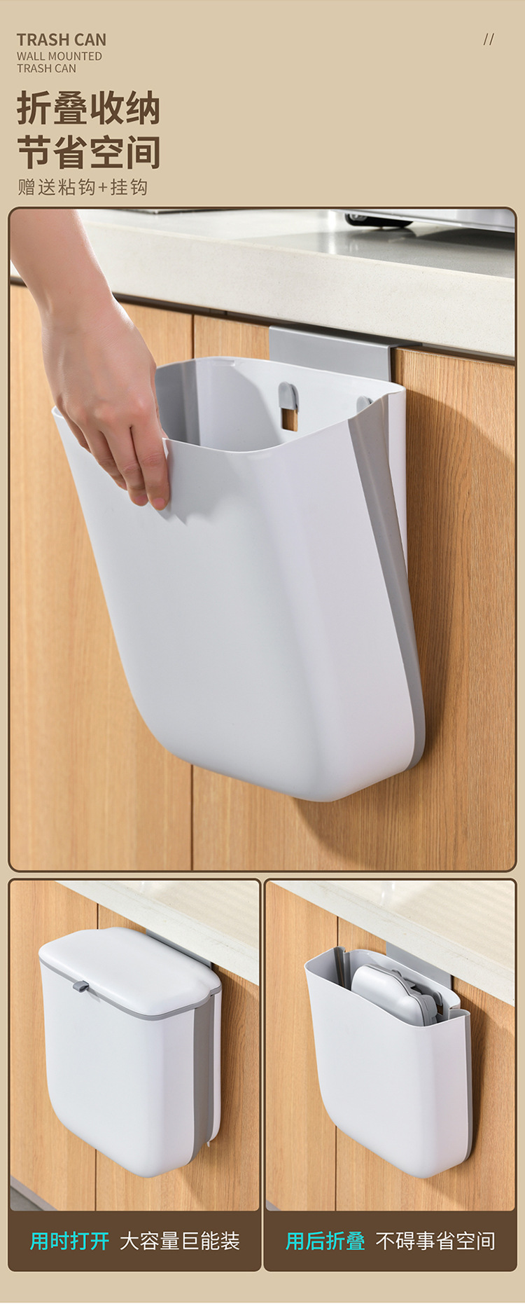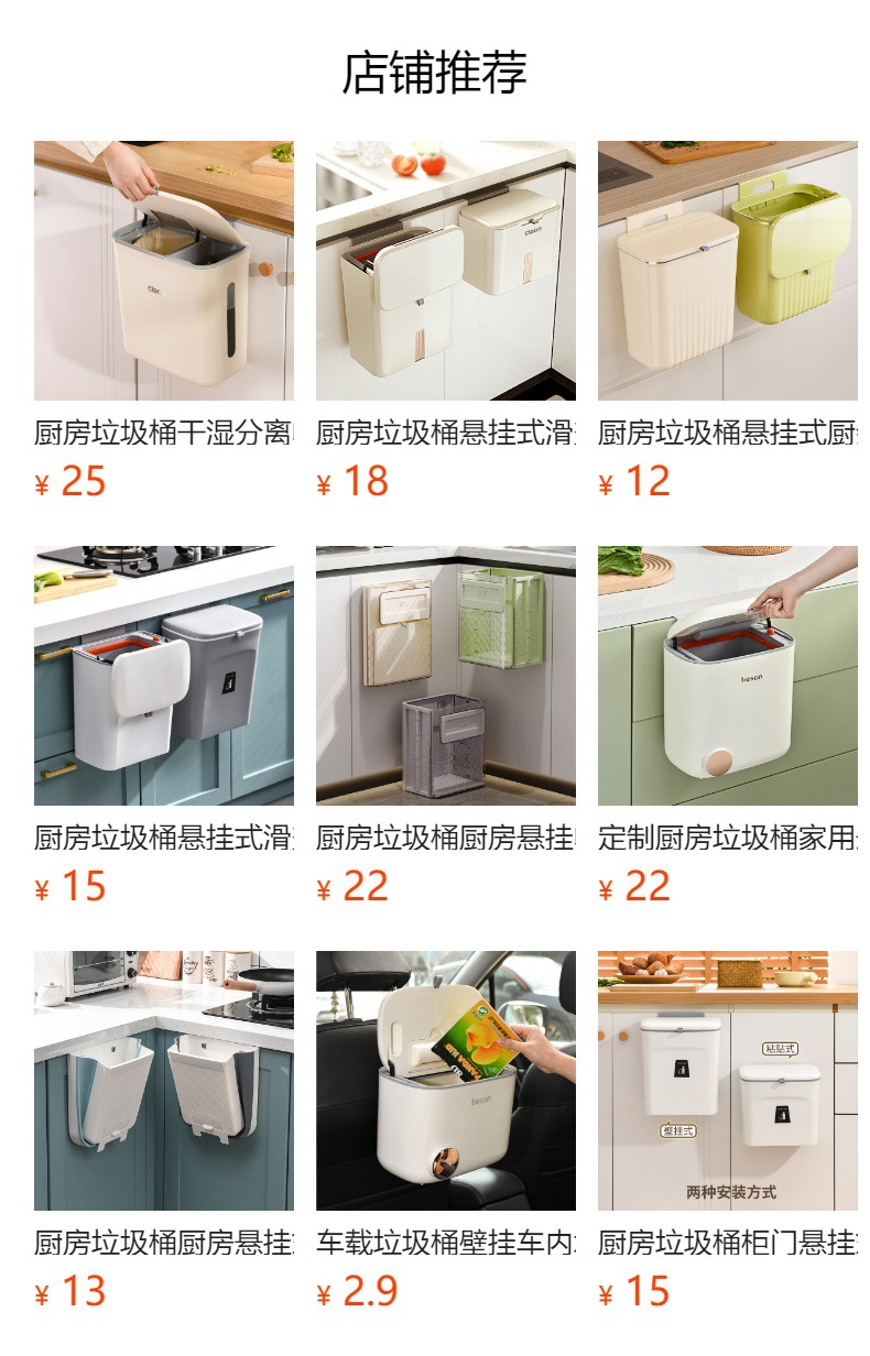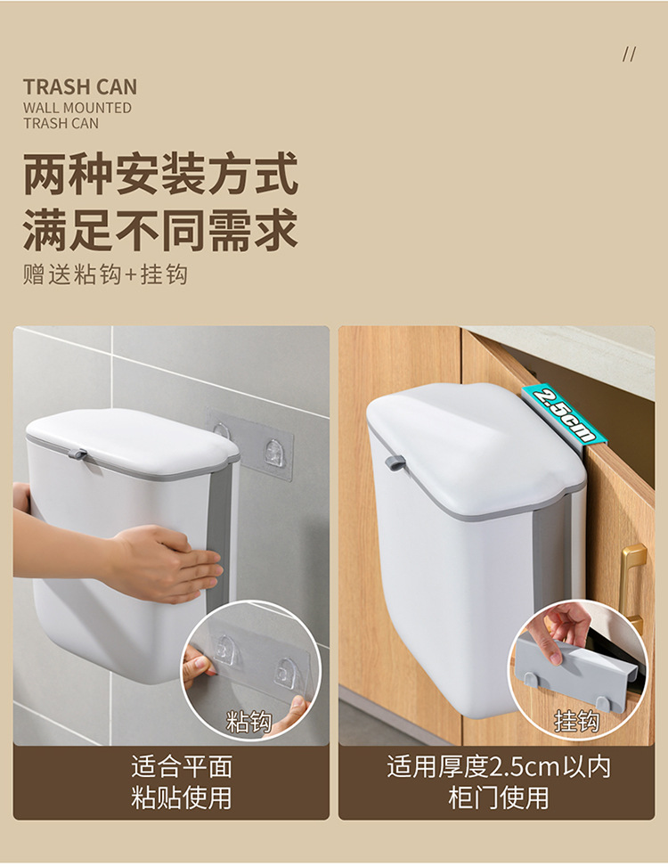 壁挂垃圾桶厨房橱柜门可挂家用带盖悬挂水槽创意不弯腰垃圾收纳桶