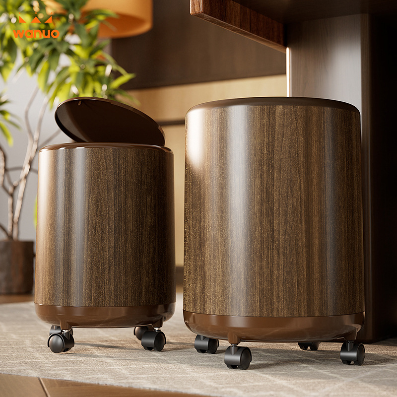 仿木纹垃圾桶家用客厅高颜值收纳桶厨房大容量带盖带轮可移动纸篓