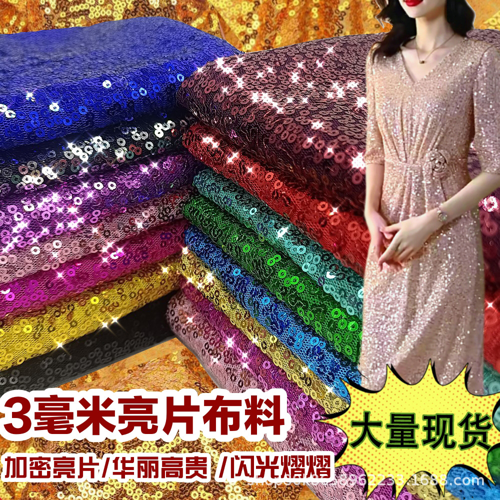 亮片布料加密3mm闪晶片绣网纱乱花婚庆桌布装饰演出礼服面料