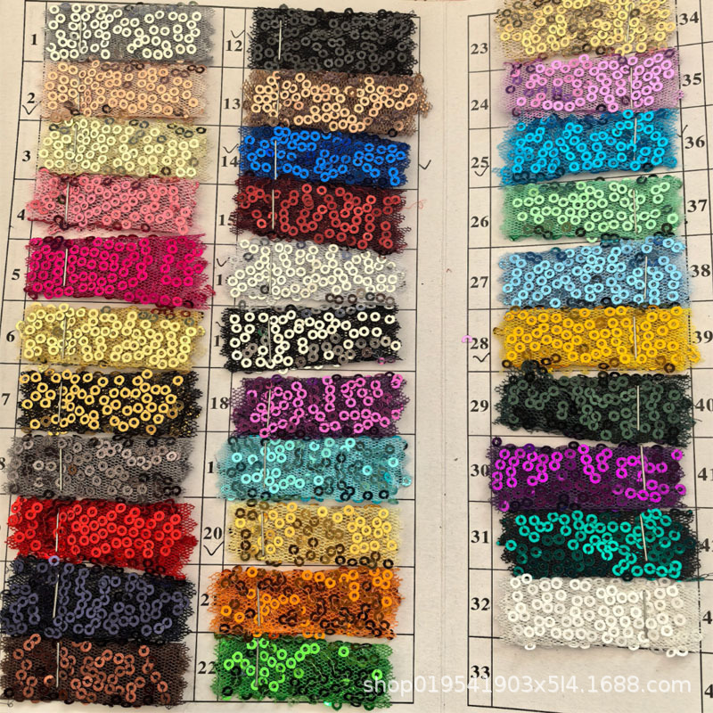 34色の暗号化3mmのスパンコール生地のクロスボーダーのスパンコールテーブルクロスの壁の布の服のウェディングドレスDIYネットの糸のビーズの布