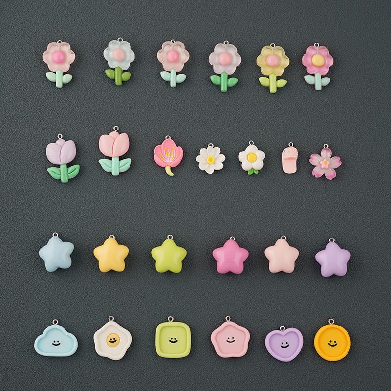 Diyアクセサリーアクセサリー樹脂愛五芒星桃の葉ポップコーンキャンディーイヤリングキーホルダーペンダント