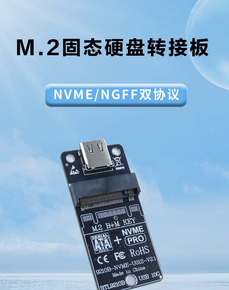9210 シングル プロトコル NVME ハードディスク エンクロージャ アダプタ ボード M.2 - USB3.1 Gen2 10Gbps