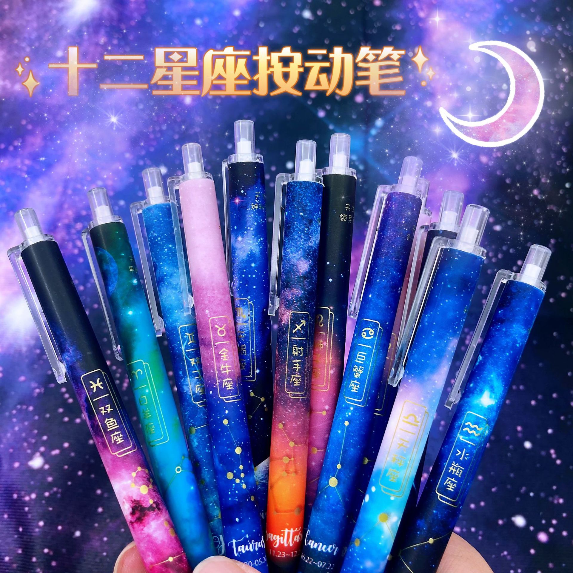 十二星座押し中性ペン星空ペン限定ins高颜値学生黒ペン0.5押しペン卸売り