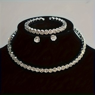 Names/名称:水钻项链手镯耳钉套装
