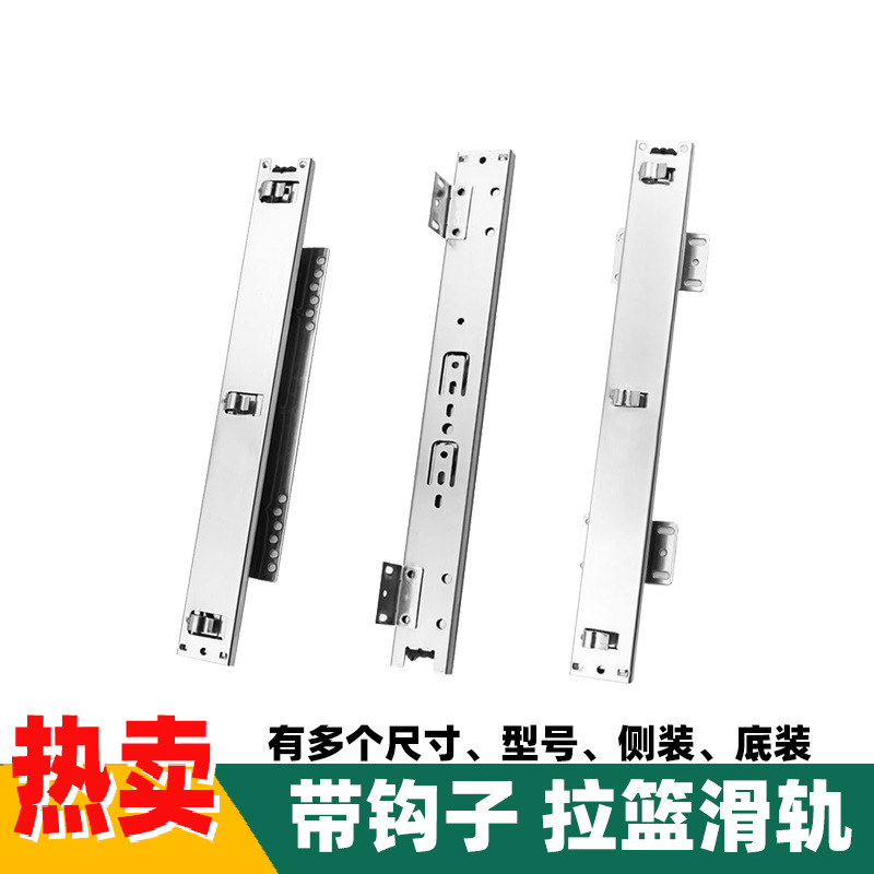 フック付きバスケット付きスライドレールのキャビネットの底には、フック付きの3つのレールがあります。