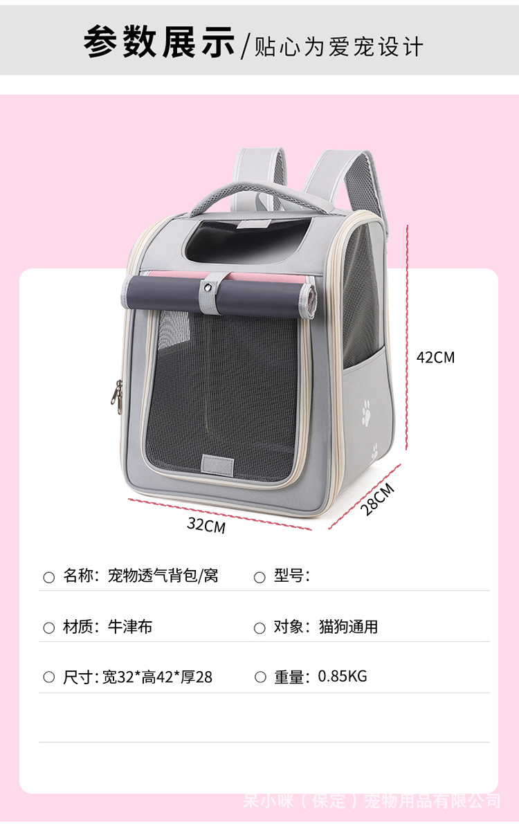 新しい猫バッグ大容量卸売りペットバッグ通気性ペットバックパックオックスフォード布猫バックパック外出猫バッグ