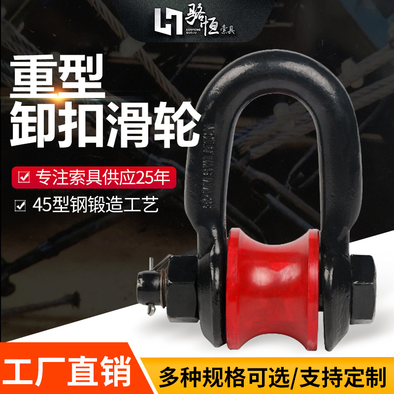 ワイヤーロープローラーシャックル、マリンリフティングプーリー、滑車ローラー式馬蹄バックル、亜鉛メッキ弓型D型回転バックル