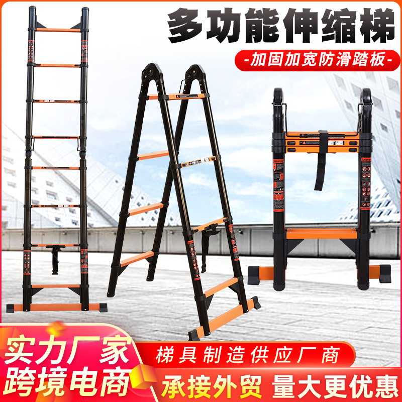炭素鋼多機能伸縮梯子工事家庭用修理人字梯子屋外携帯登高竹節梯子メーカー
