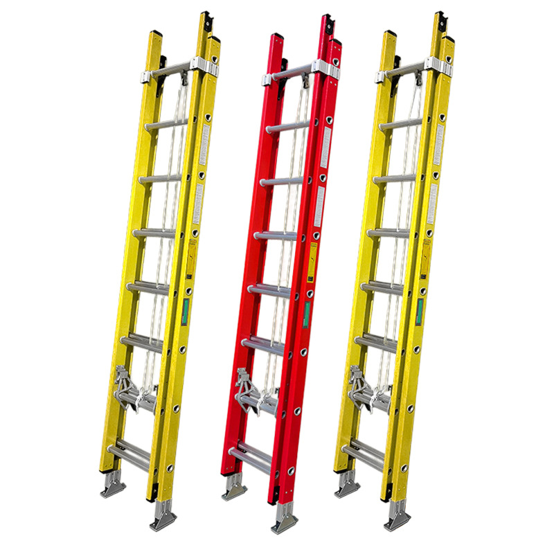 ガラス鋼絶縁伸縮昇降はしごロープはしご電気技師がはしごを引っ張る工事消防がはしごを登る