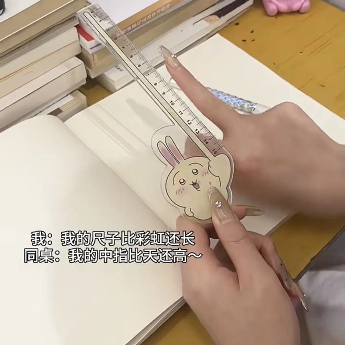 小紅の本の同項のウサチの小さい八の定規はアニメの周辺の学生の文房具の用品の高い顔の値の定規をいじります。