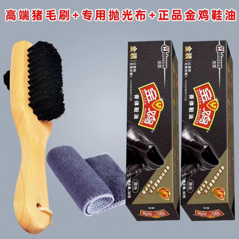 金鸡鞋油膏体鞋油黑色通用真皮保养油擦皮鞋刷神器护理膏套装擦鞋