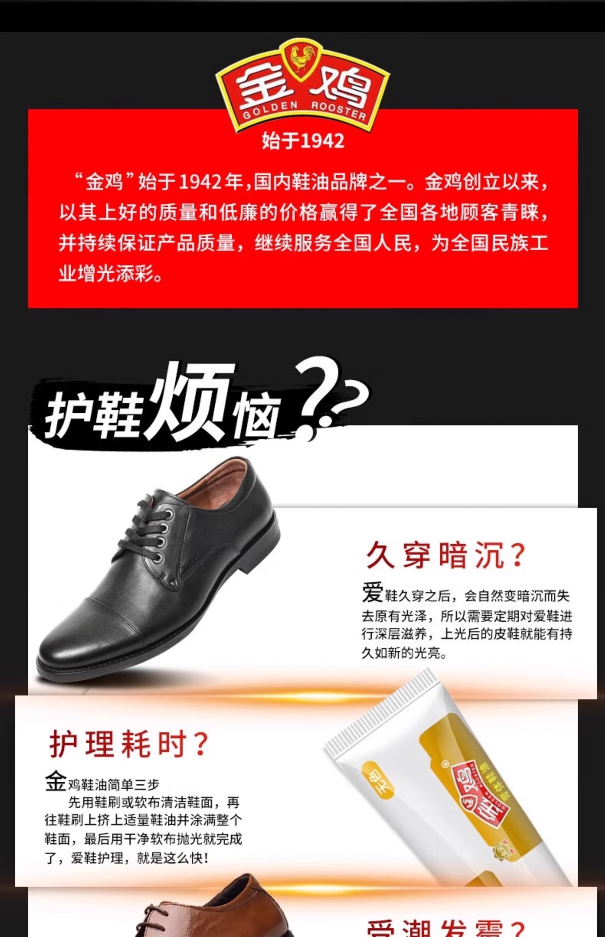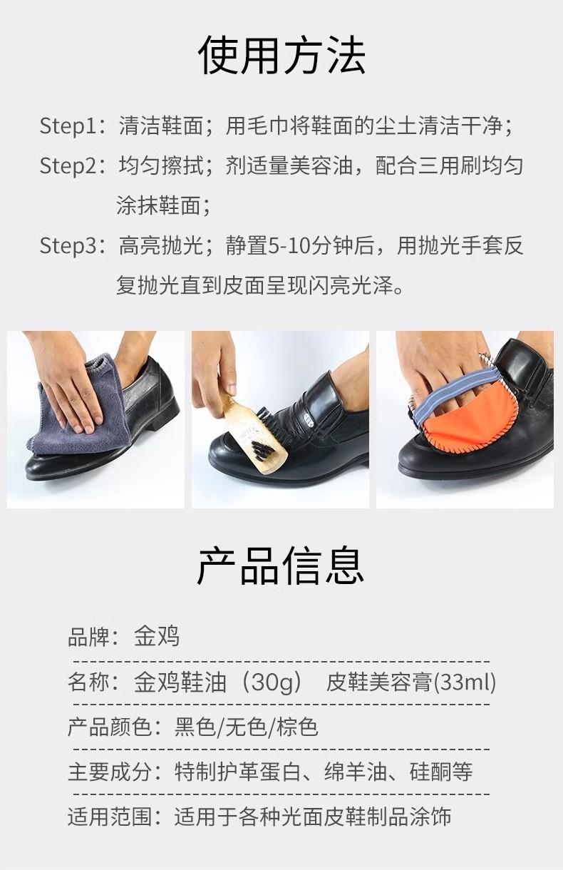正品金鸡膏体鞋油黑色无色皮鞋油皮鞋增亮高级皮自然色棕色防水