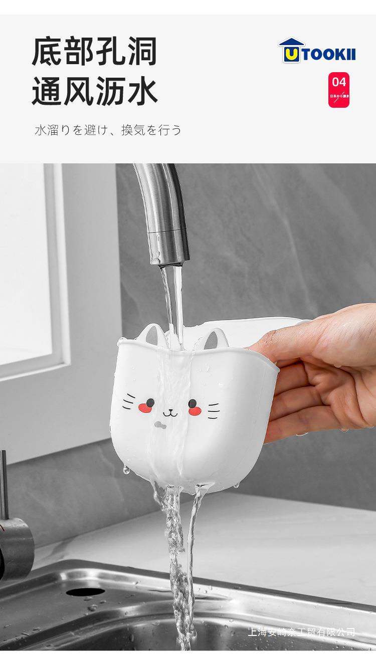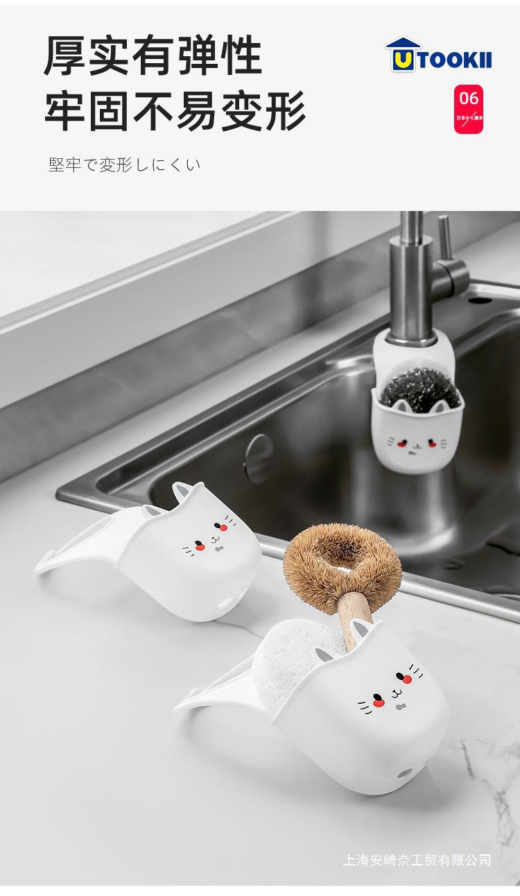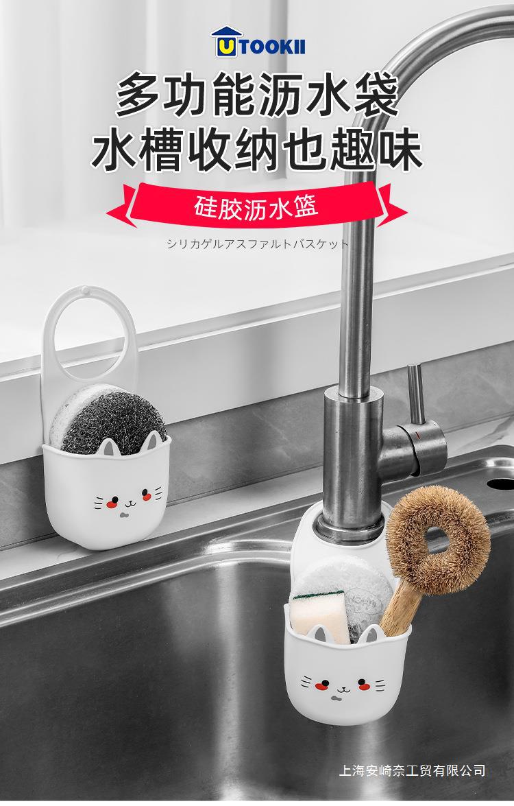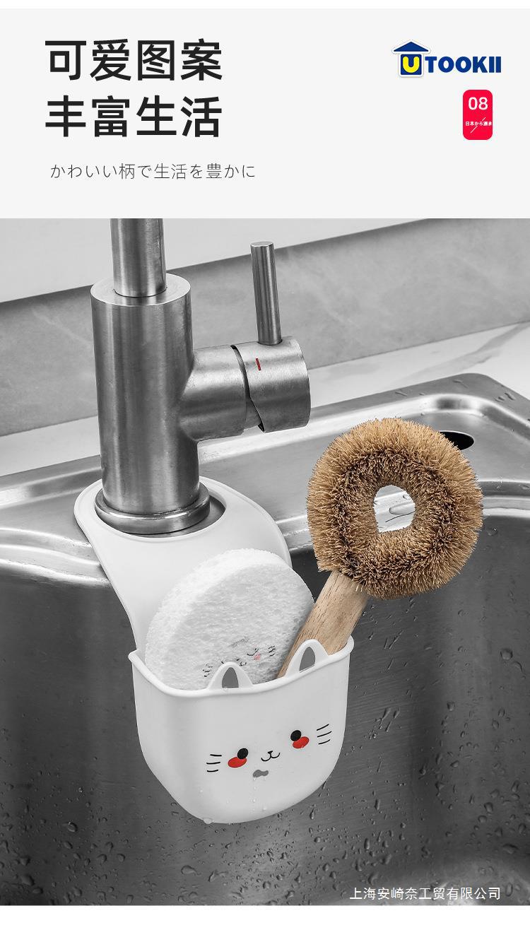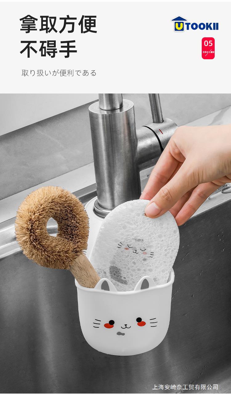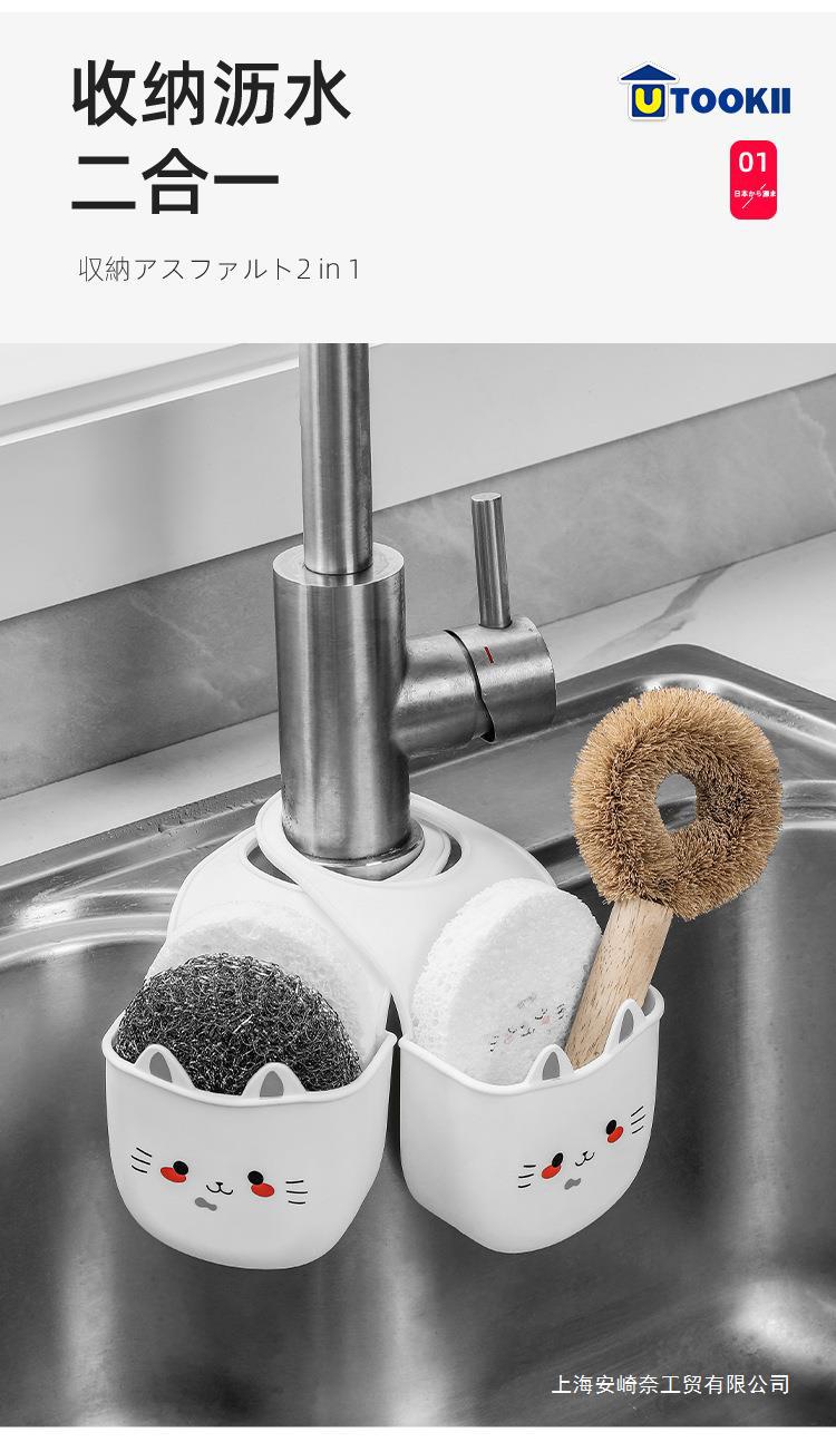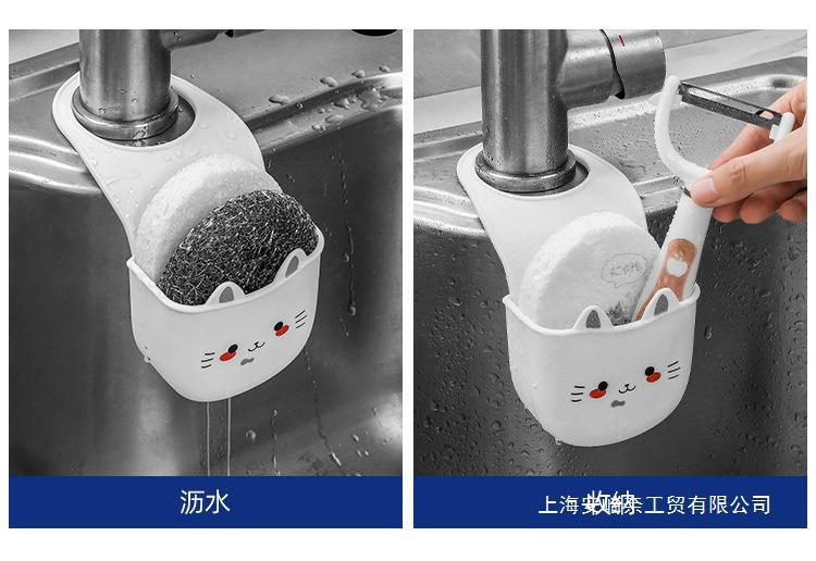 シンク排水ラックスポンジ収纳ラックポットブラシ干し収纳バスケットキッチン洗面台水切り挂け袋ホワイト