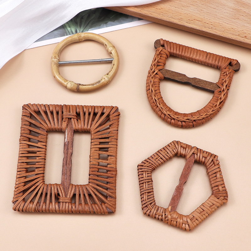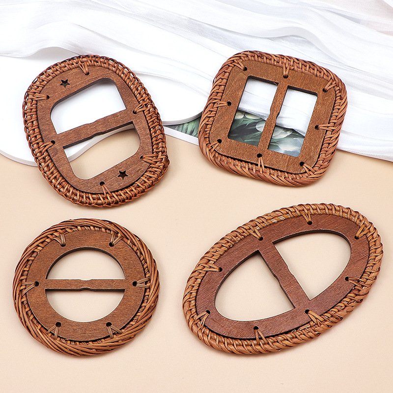 藤編みベルトバックル方形円型ベルトベルトベルトバックル草編みアクセサリーバックル三段バックル内径卸売固定ベルトバックル