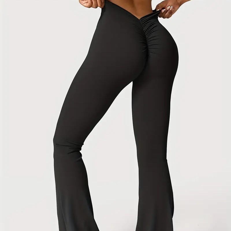 2025 春夏新作アマゾンヨーロッパとアメリカの女性のフレアクロスソフトハイウエストスポーツカジュアルヨガパンツ