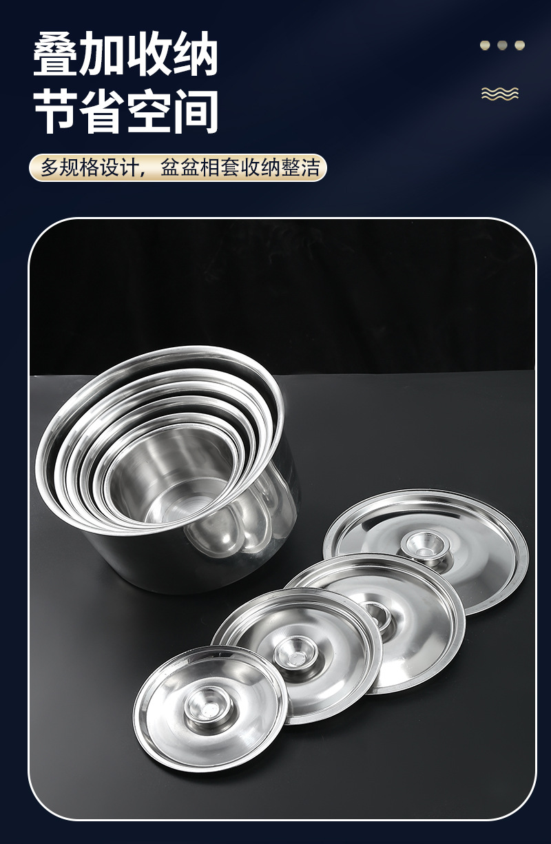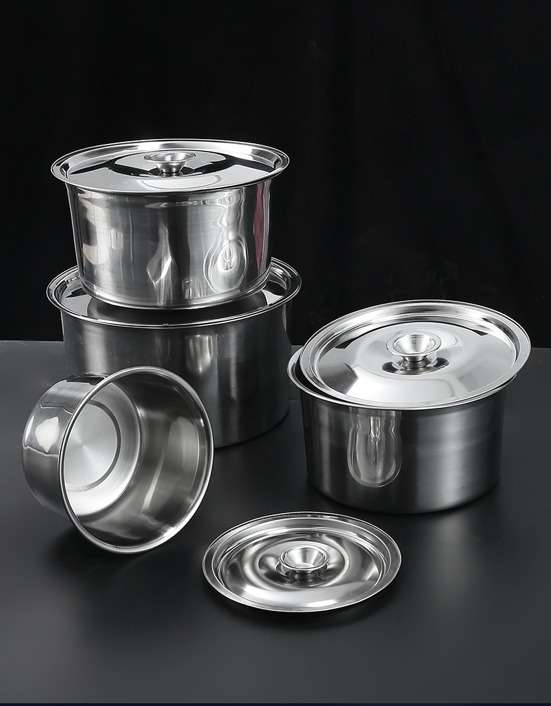 ステンレスの味の杯の円形の調味料のたらいの油のたらいは蓋の台所を持って卵のたらいの大きいスープのたらいと洗面器の調味料の缶のシチューの杯を打ちます