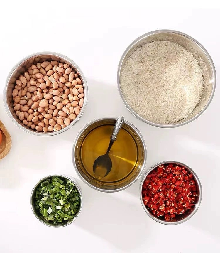 304ステンレスの味の杯の商用ホテルの用品は厚くて、非磁気の調味料のたらいの卵のたらいは蓋の円形の調味料の缶を持ちます。