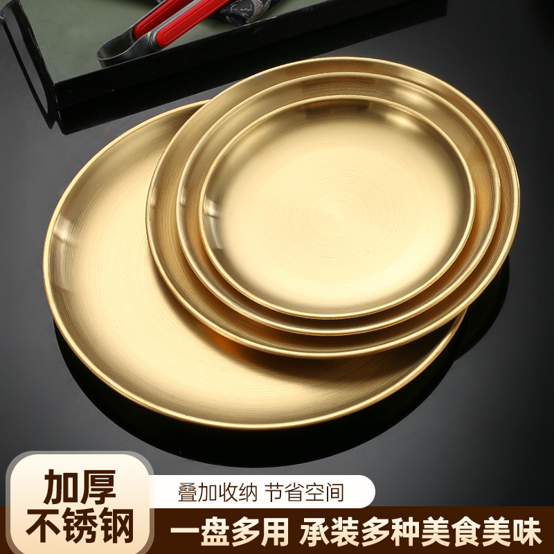 韓国式ステンレス円盤焼肉店金色果物スナック皿皿料理皿レストラン平皿浅皿商用