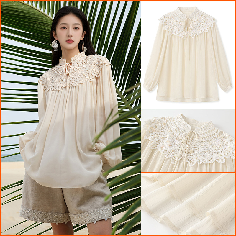 早秋温柔千金风高级衬衫女国潮新款水溶蕾丝云肩上衣 ZX款N7039