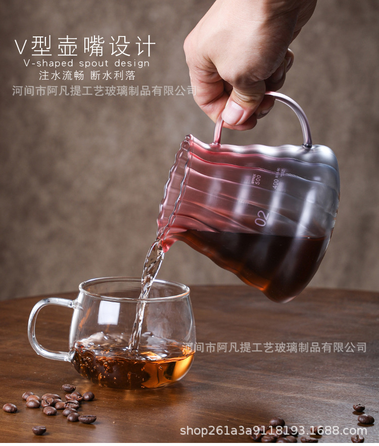 耐高温ガラスコーヒーポットヨーロッパ式尖口手沖共有ポット家庭用牛乳スケールカップ現物供給