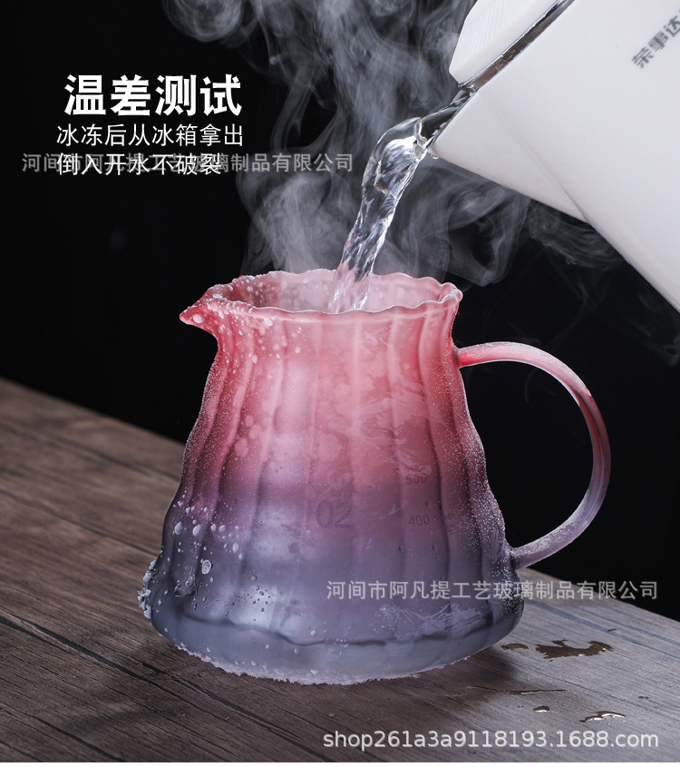 新品ガラス引き花カップカラーハンドル手抜きコーヒー分享杯一体型フィルターカップ手作り目盛りがはっきりしている