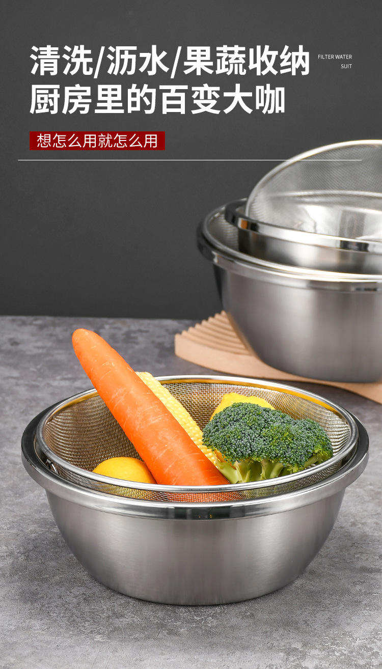 304食品级不锈钢盆洗菜盆沥水篮漏盆厨房家用滤水篮淘米和面篮子