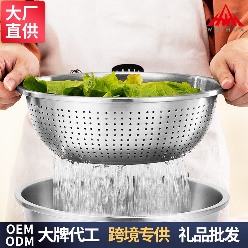 非磁性ステンレス製細孔水切り野菜洗い桶多目的水切りかご乾燥かごフルーツボウル野菜入れ卸売